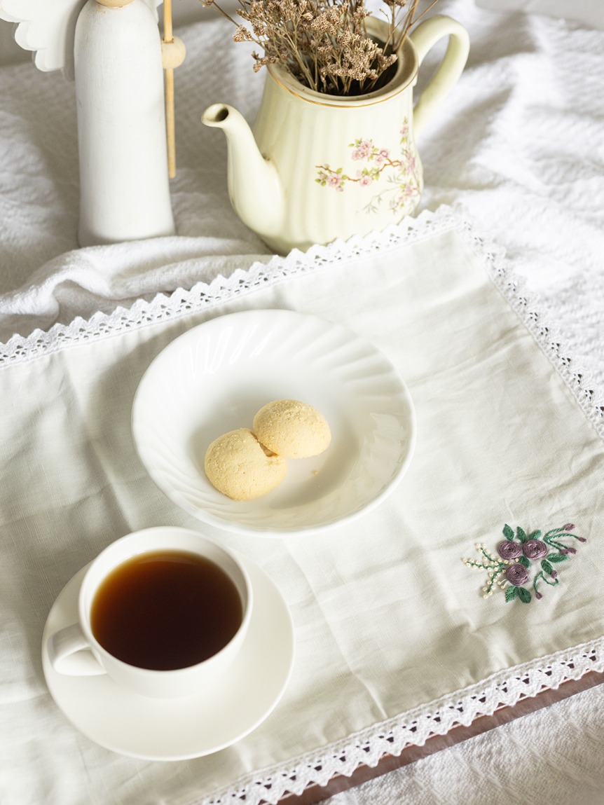• Tray Cloth or Tray Liners with elegant hand embroidery detailing.