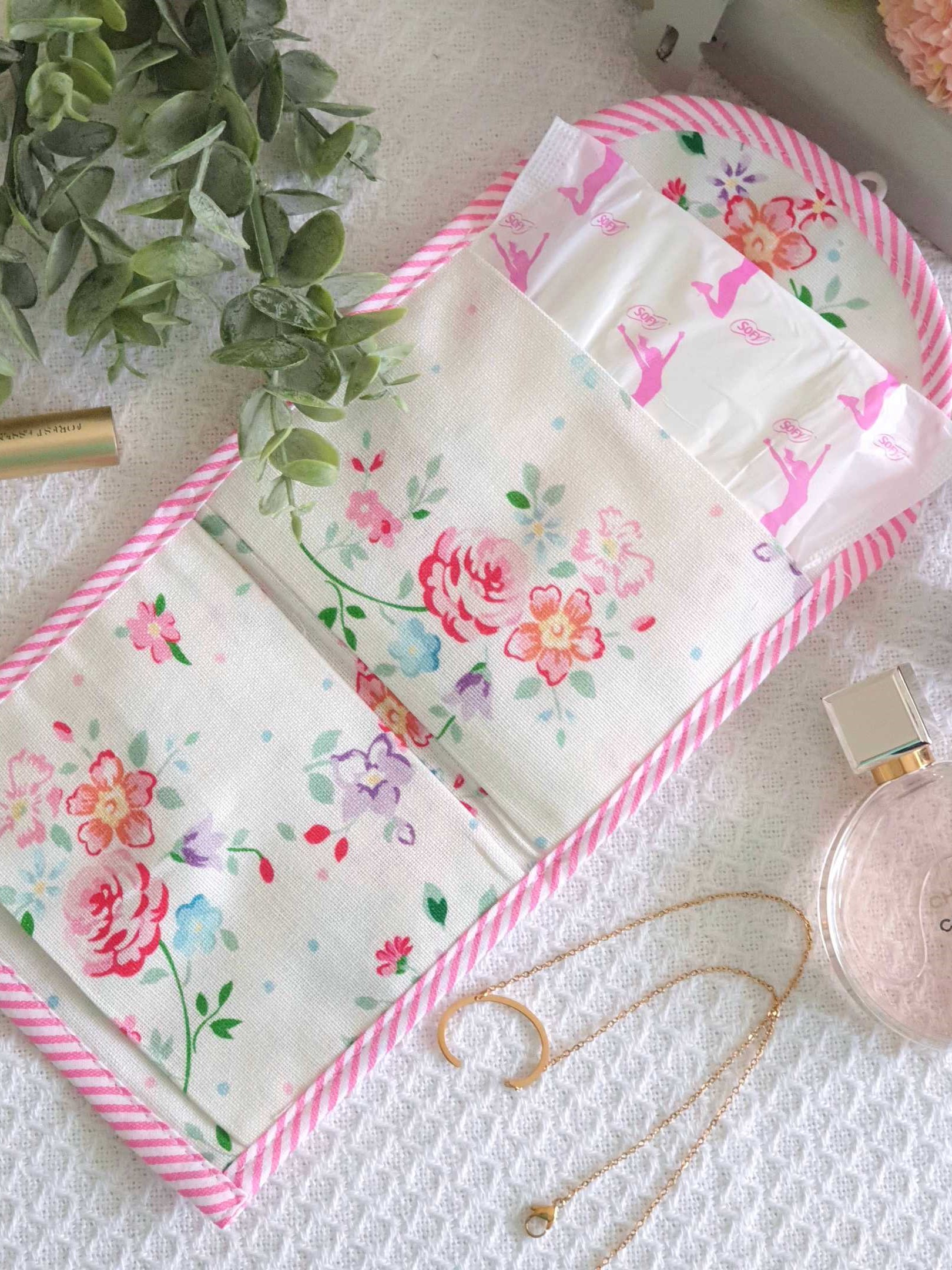Multipurpose Pouch - for sanitary napkins, masks, bills etc. This light weight, handy pouches are perfect to carry your sanitary napkins comfortably and fashionably. You could also use them to organise and carry your masks, tissues, bills or any other daily essentials very conveniently.