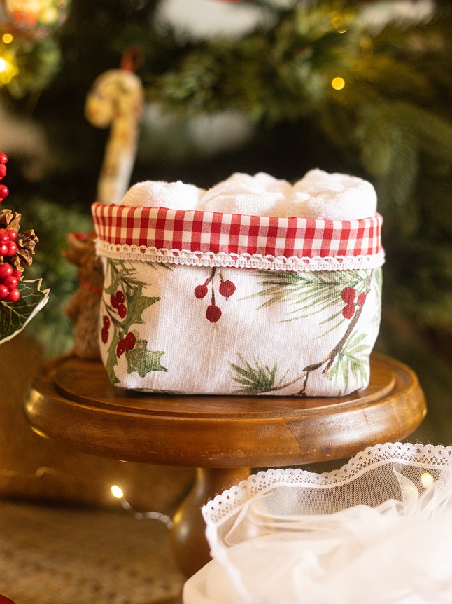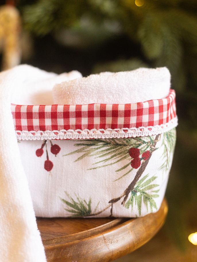 Care instructions: Gentle machine was for face towels and dry clean for fabric baskets. Do Not Bleach, Iron on low heat (not on laces and embroidery)