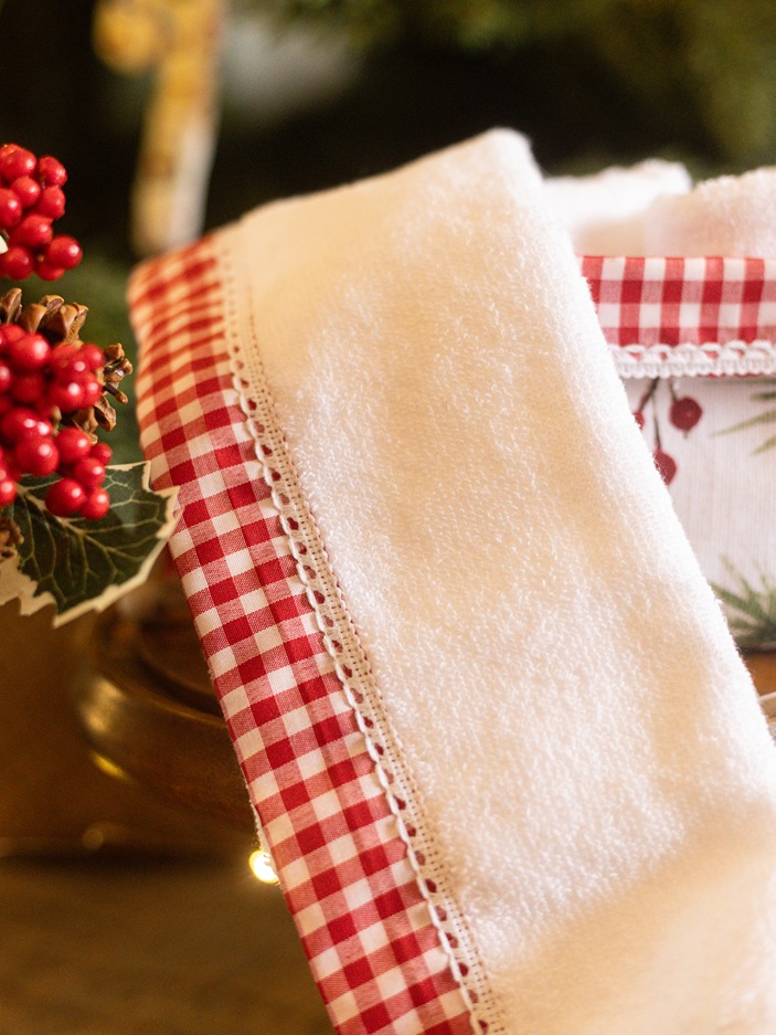 Basket Towel Set - Christmas Pine and Berries with Red Gingham