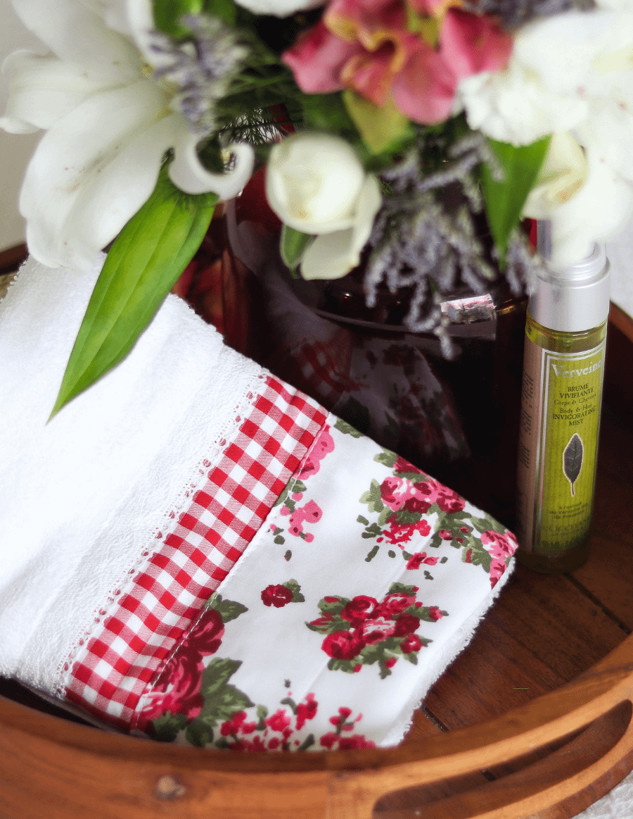 Soft cotton bath and hand towel set, with floral and lace detailing on one end of the towel. Wrap yourself in luxury and pamper yourself.