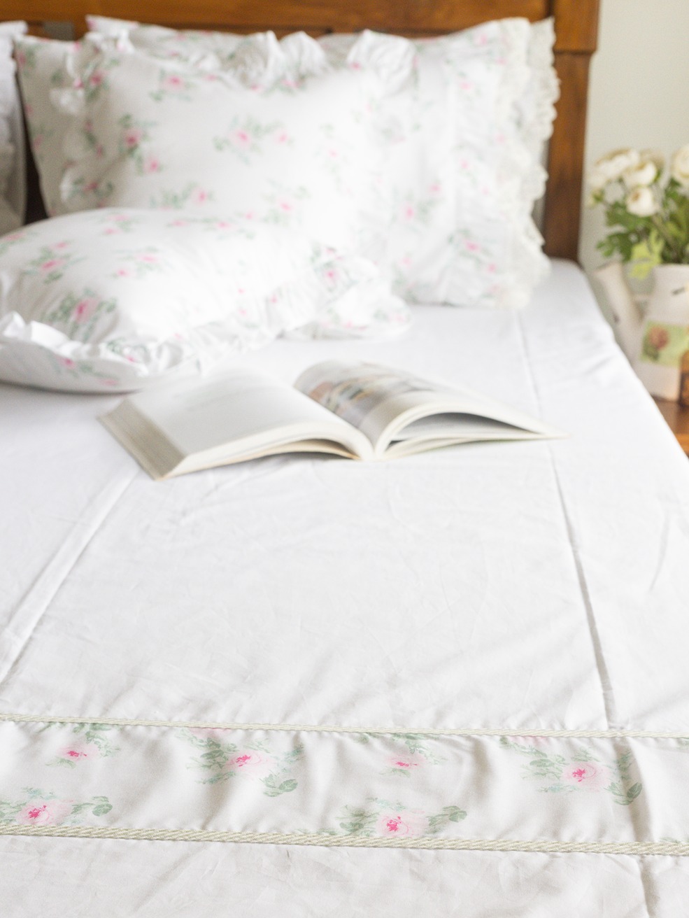 White and pinnk floral themed bedding collection