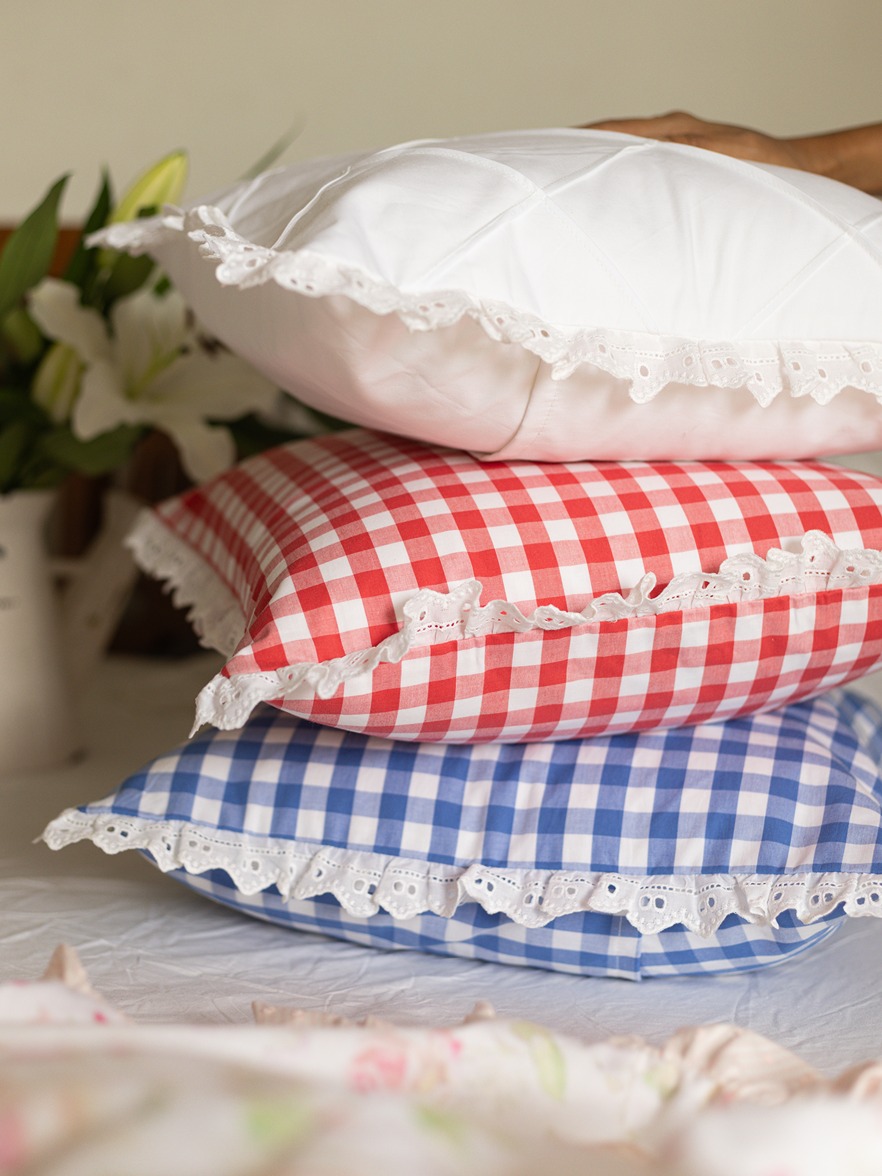 Cushion Covers - Classic Red Gingham with lace ruffled edges (16" x 16")