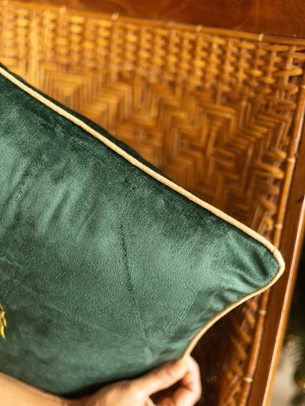 Cushion Covers - Green Velvet with Golden Wreath Embroidery (16" x 16") - Single Unit