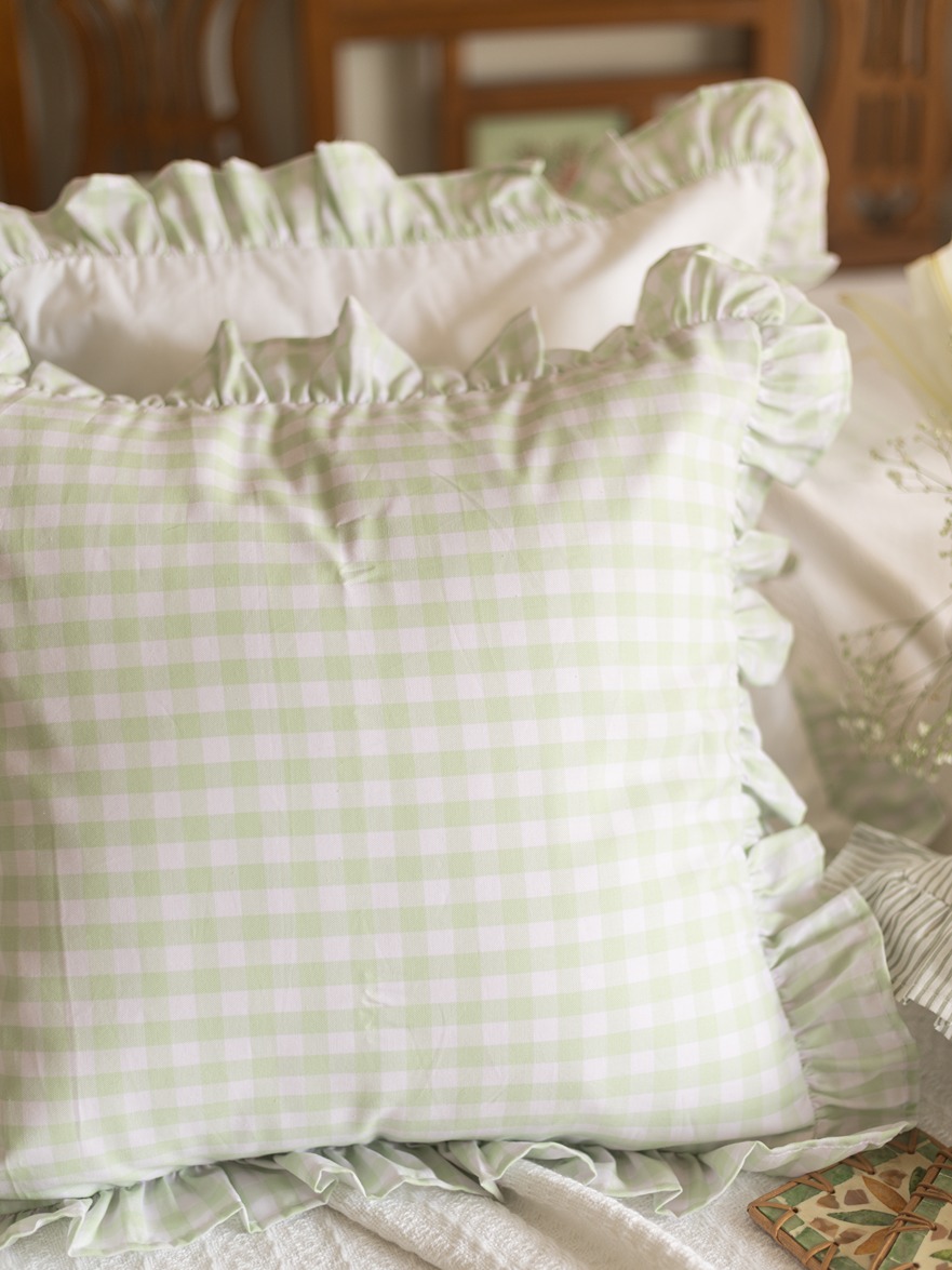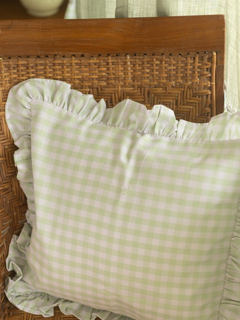 Cushion Covers - Pastel Green Gingham with ruffled edges (16" x 16") - Single Unit