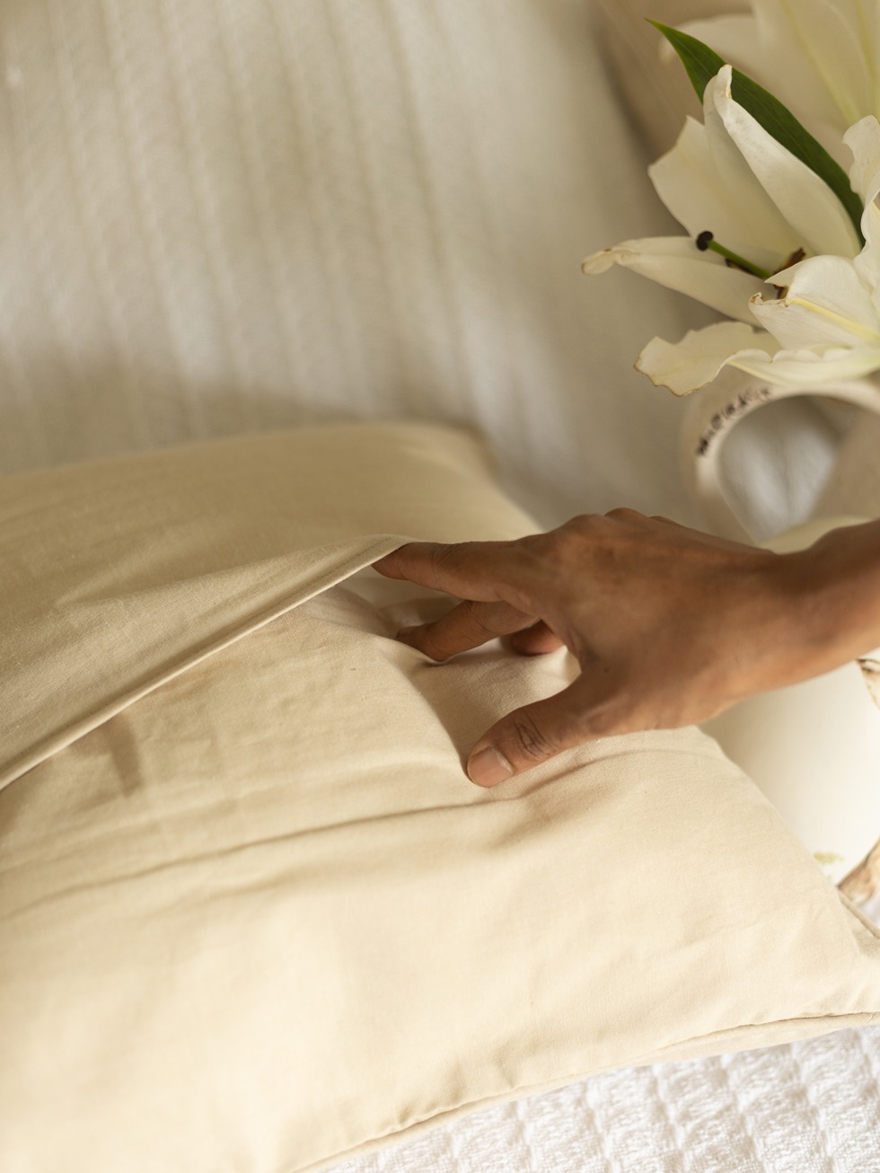 Our cushion covers are hand cut and sewn by us and may have slight irregularities that are a natural outcome of the human involvement in the process.