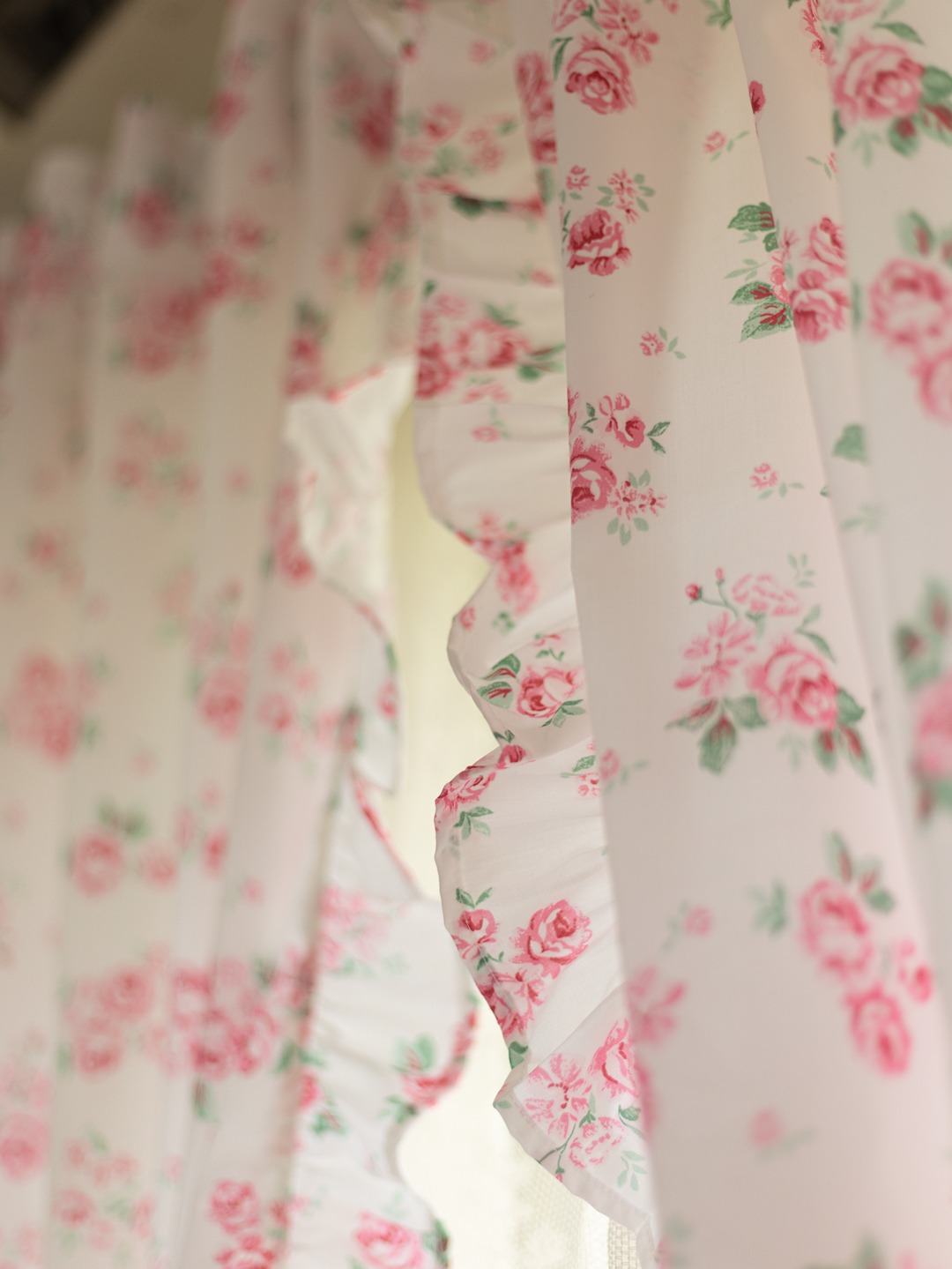 Add a touch of charm to your space with our handcrafted curtains featuring delicate ruffles detailing.