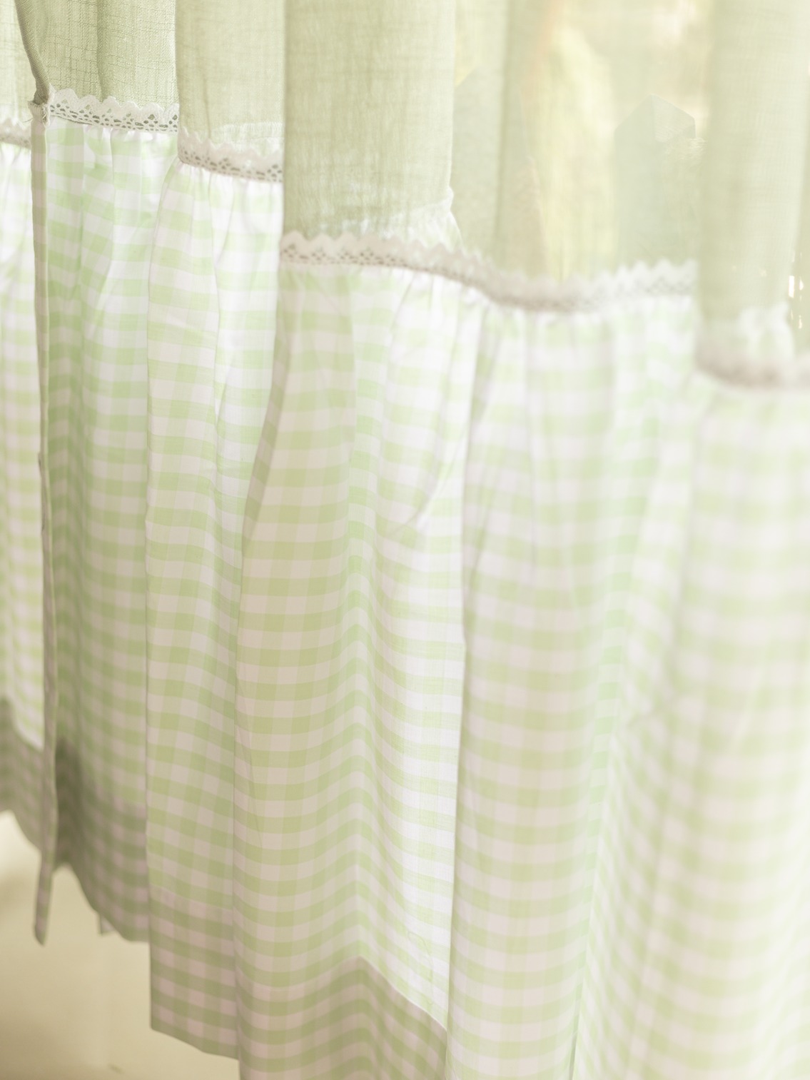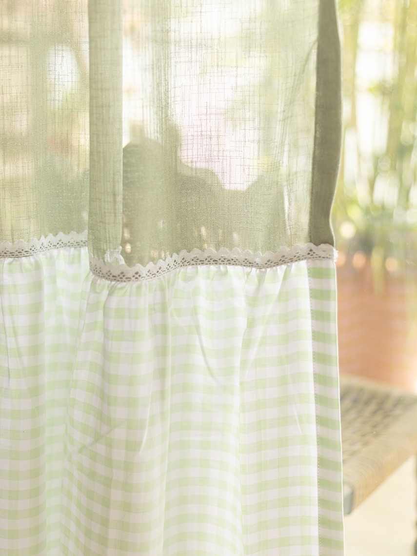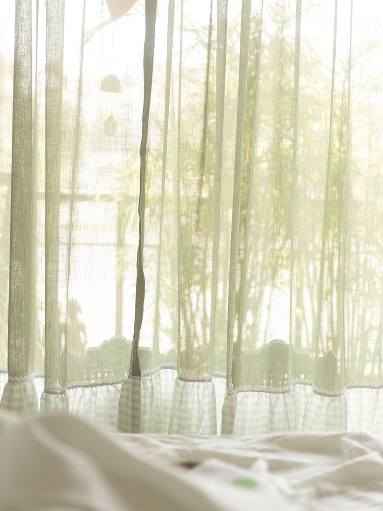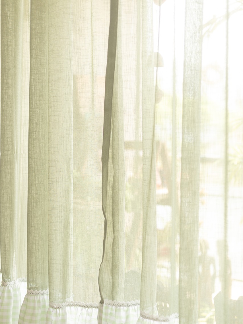 Pattern : Green Sheer with gingham ruffles attached to the bottom part of the sheer curtain