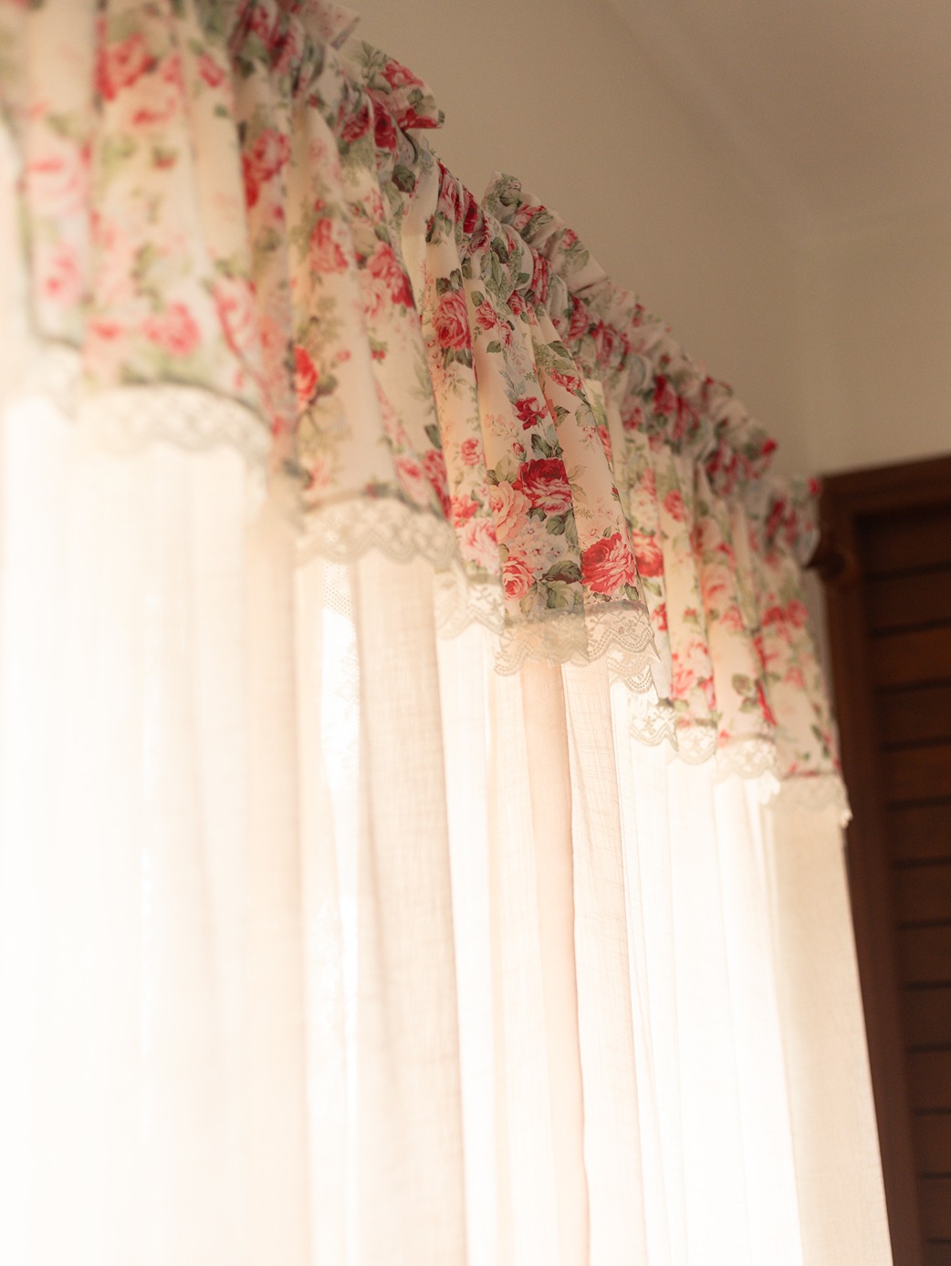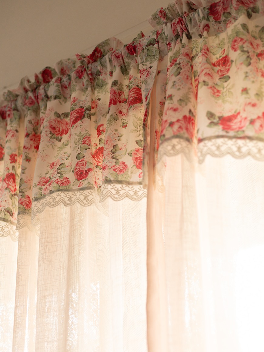Add a touch of charm to your space with our handcrafted curtains featuring floral and lace detailing.