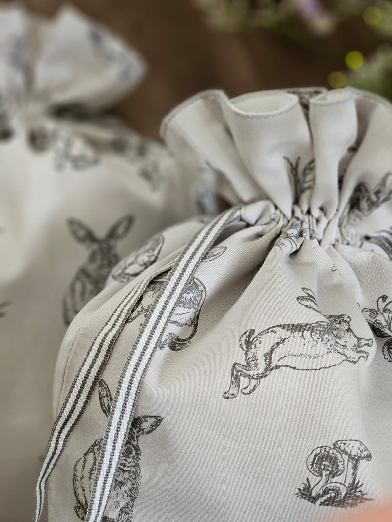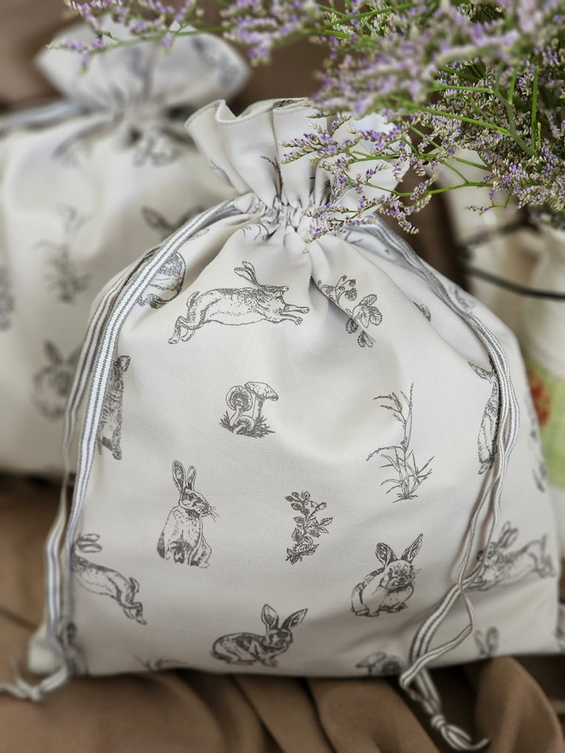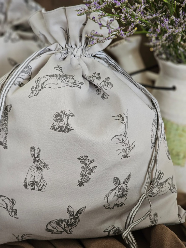 Drawstring organiser bags in bunny theme.