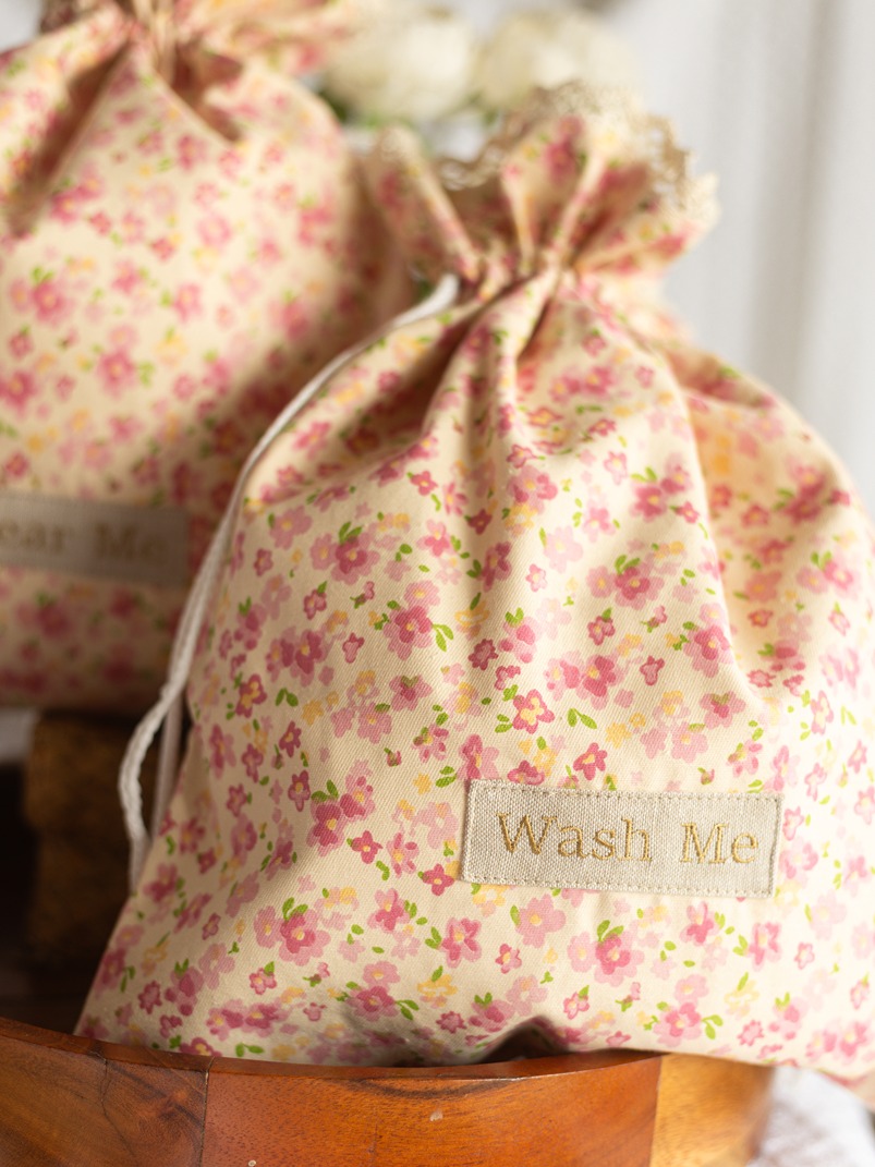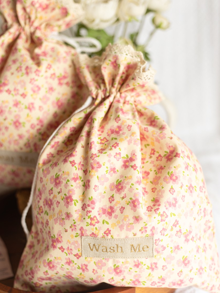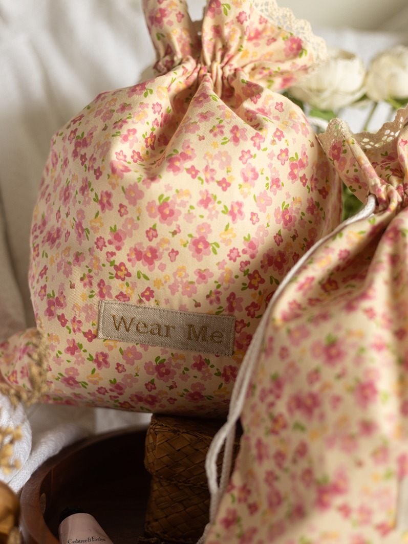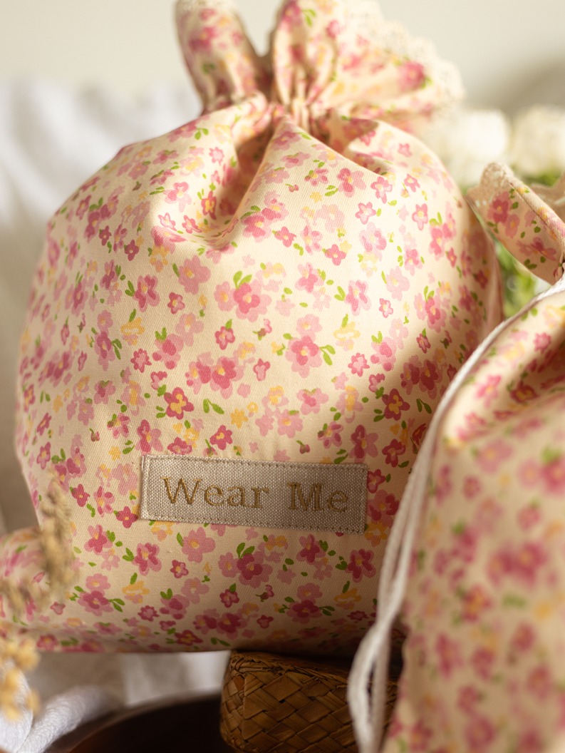 Drawstring Bag - Little Florals on Beige (Set of 2 units - Wear Me and Wash Me)