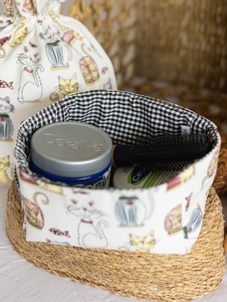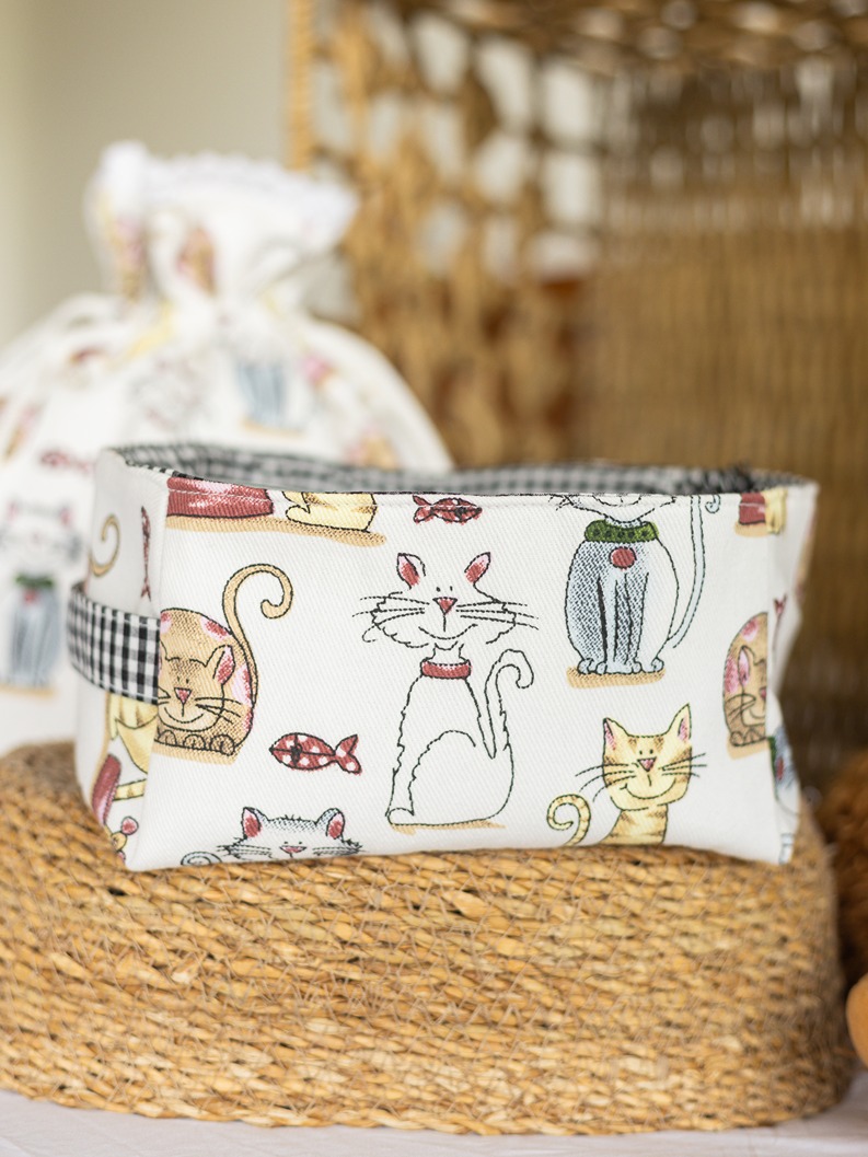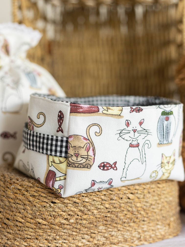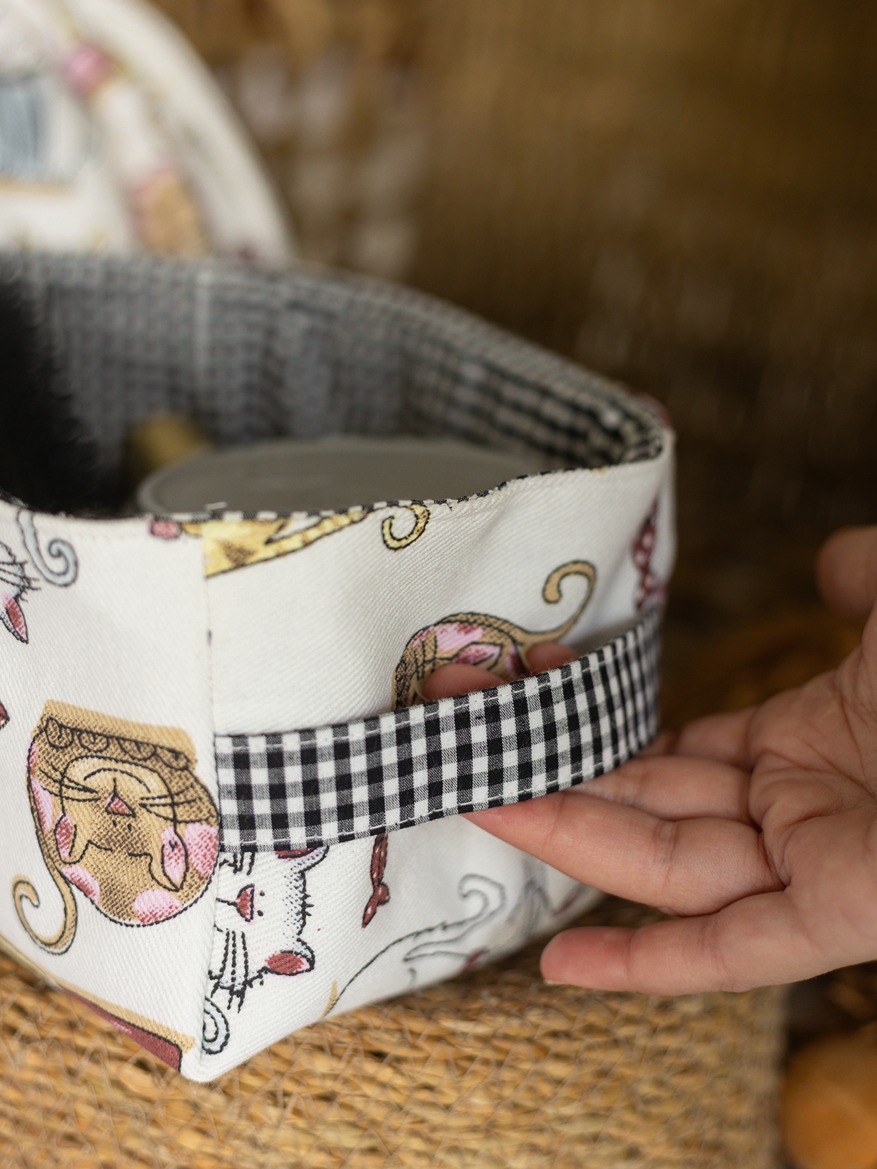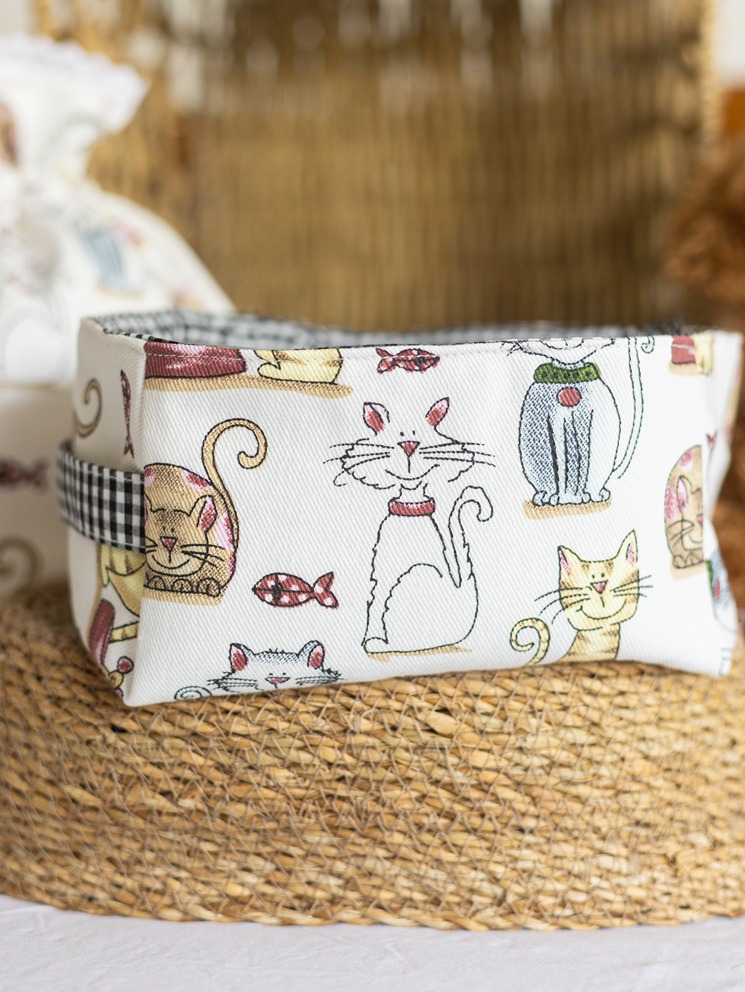 Fabric Baskets with handle - Cat Themed (Size: 7.5" x 5.5" x 4.5")