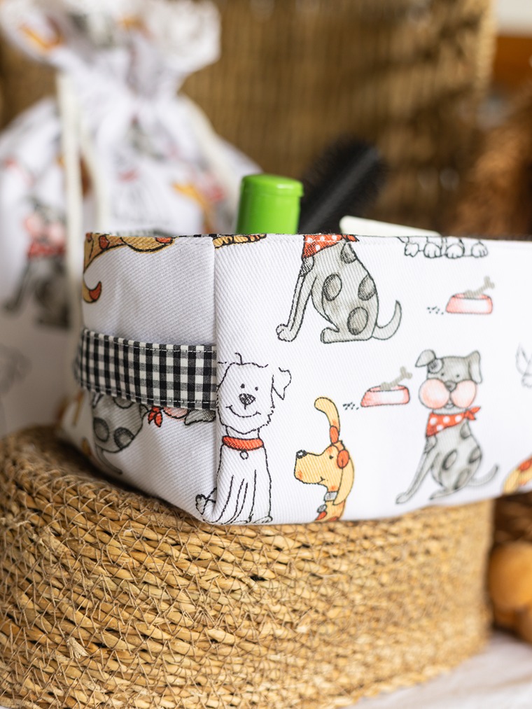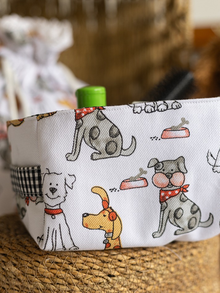 Fabric Baskets with handle - Dog Themed (Size: 7.5" x 5.5" x 4.5")
