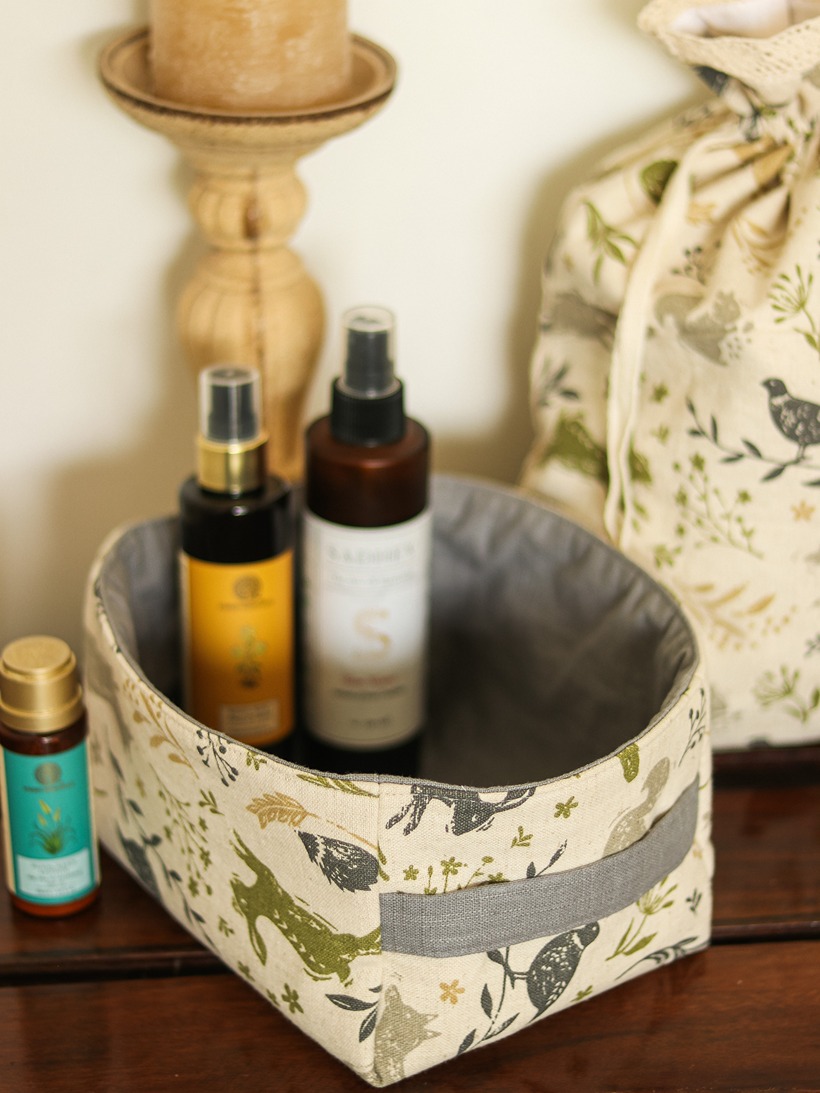 Fabric Baskets with handle - Woodlands (Size: 7.5" x 5.5" x 4.5")
