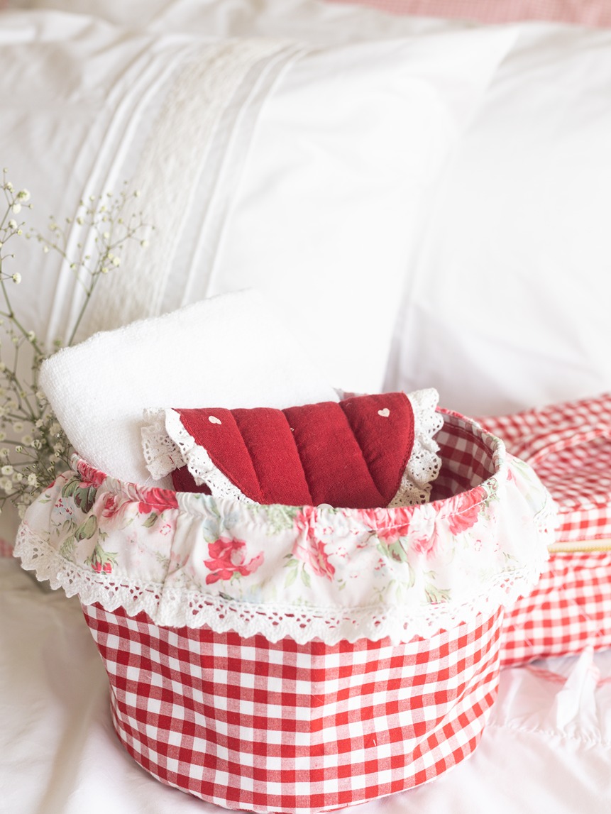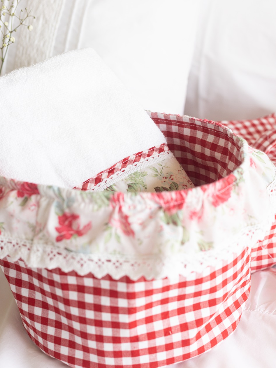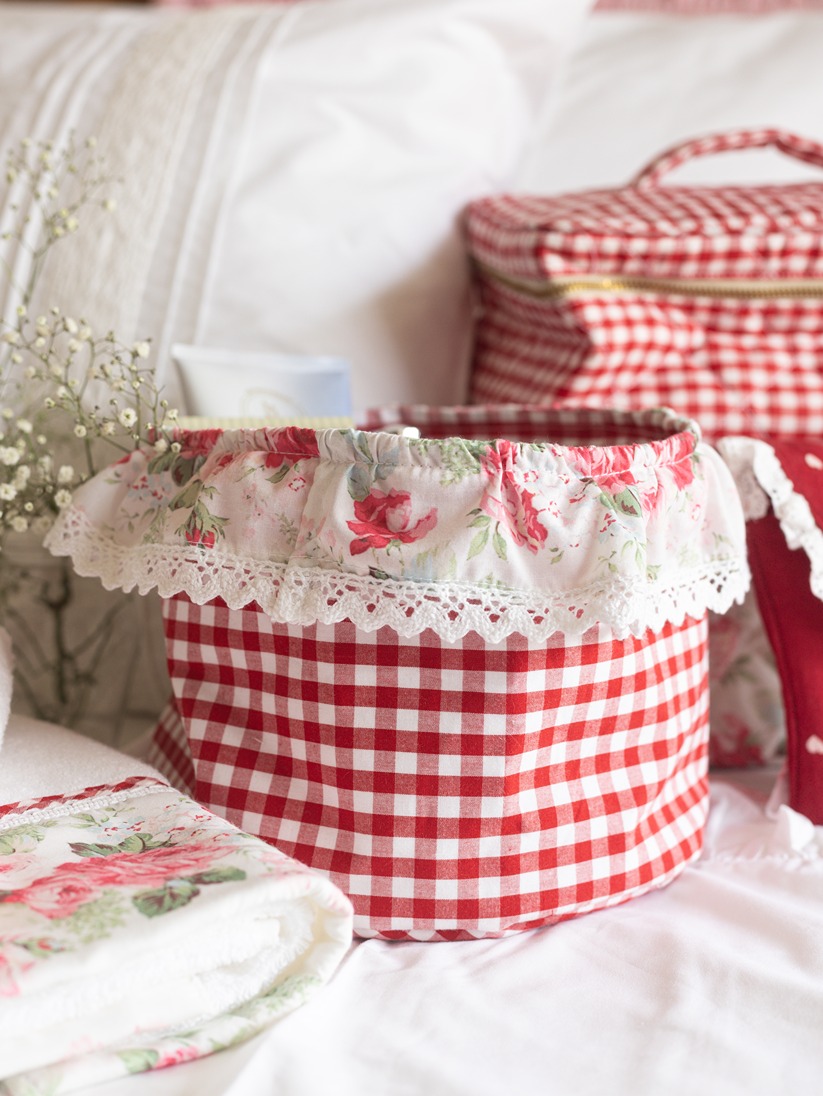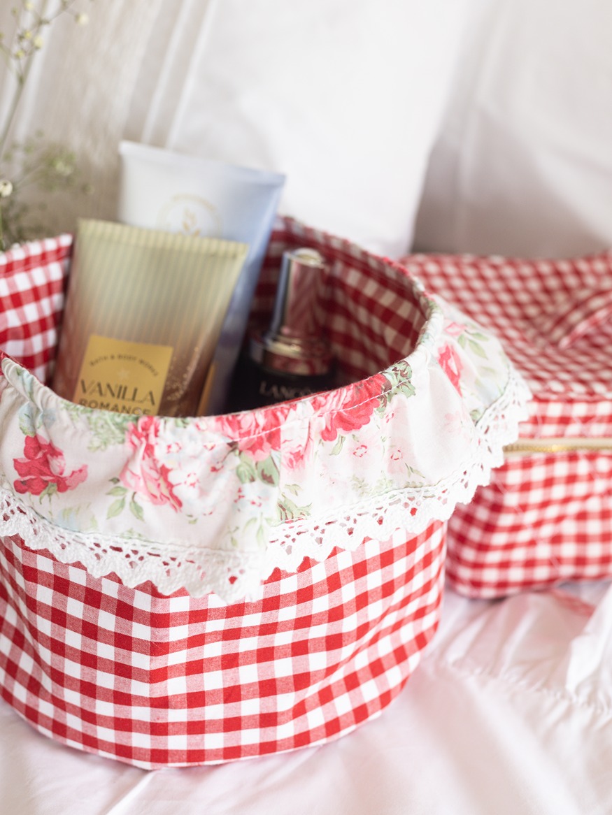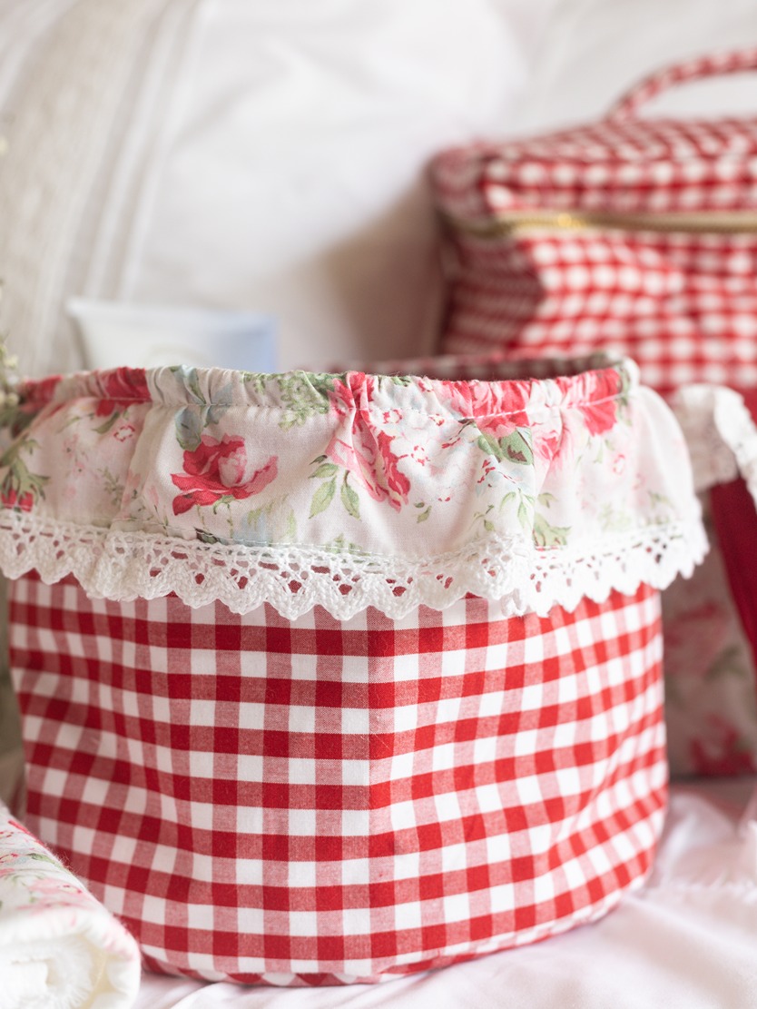 Fabric Baskets with ruffled edges - Eternal Rose on Red Gingham (Single Unit)