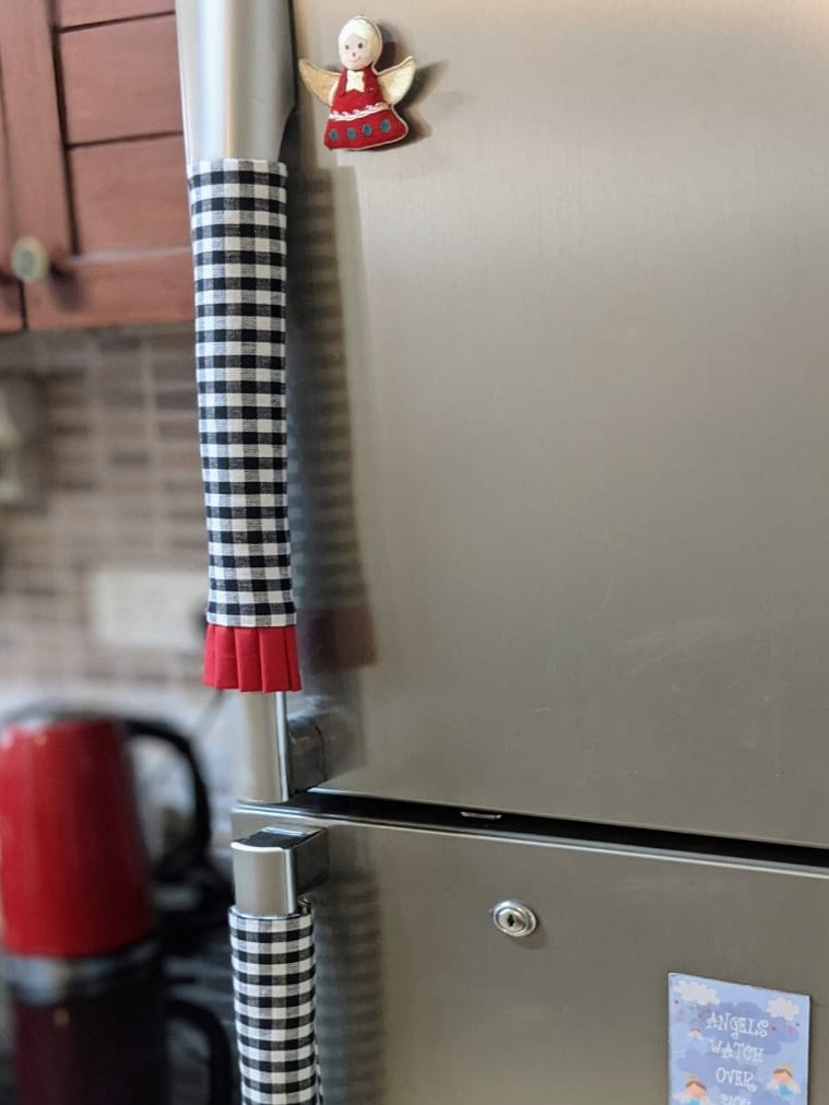 Fridge Handle Covers - Black and white gingham with red frills (set of 2)