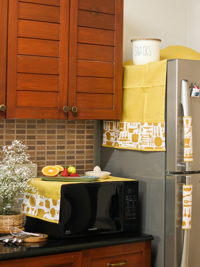 Package Contains: 2 Cotton Fabric Fridge Door Handle Covers – (5.75” x 9” x 0.25”);