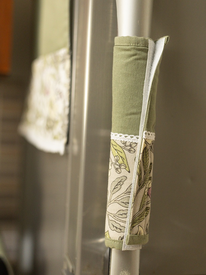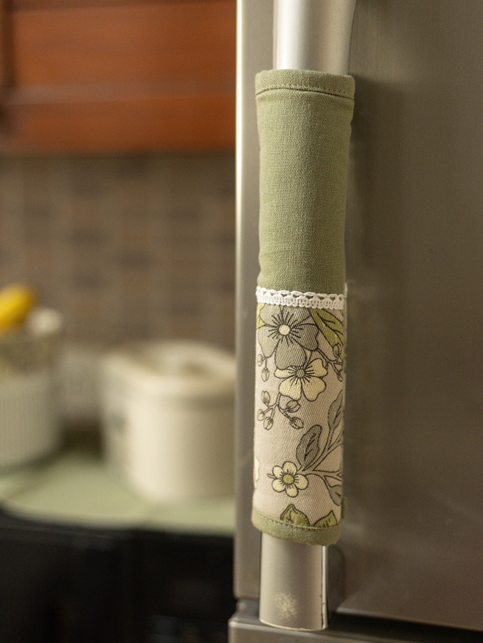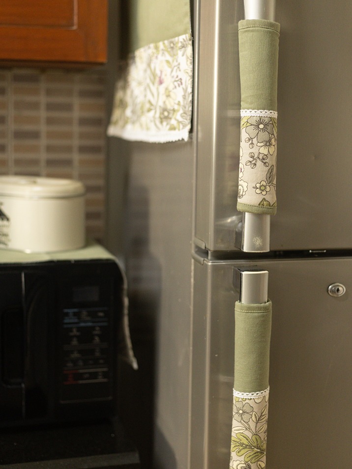 Fridge Handle Covers - Olive green - floral Themed (set of 2)