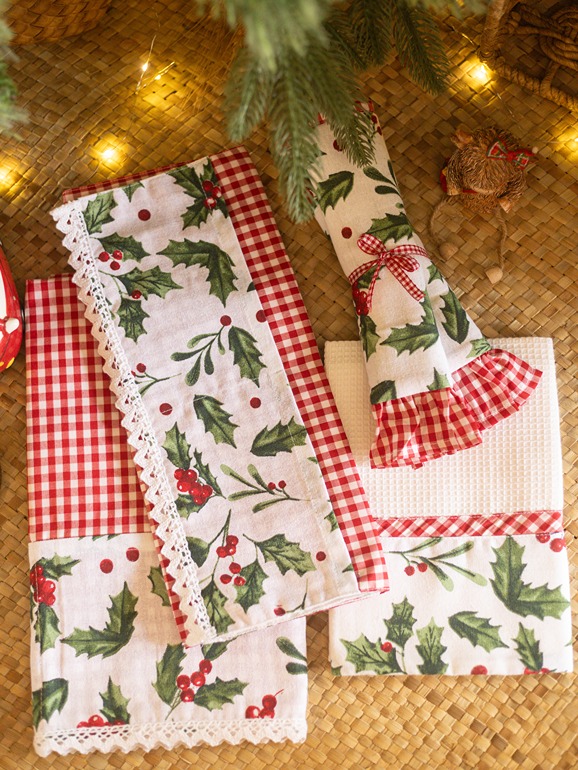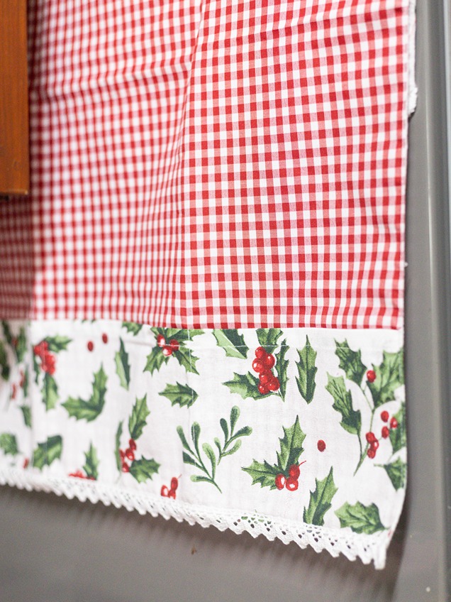 Holly and gingham themed kitchen appliance cover to protect your refrigerator top.