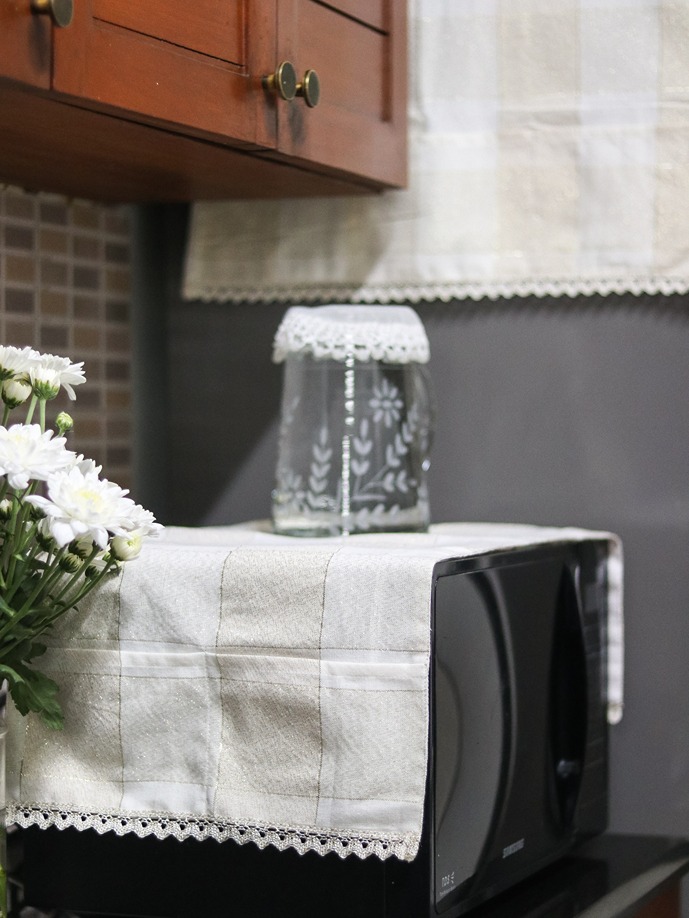 You could also club them with our other kitchen linen products such as fridge door handle covers, oven top cover, kitchen valances, kitchen napkins and others to create a beautiful theme around.