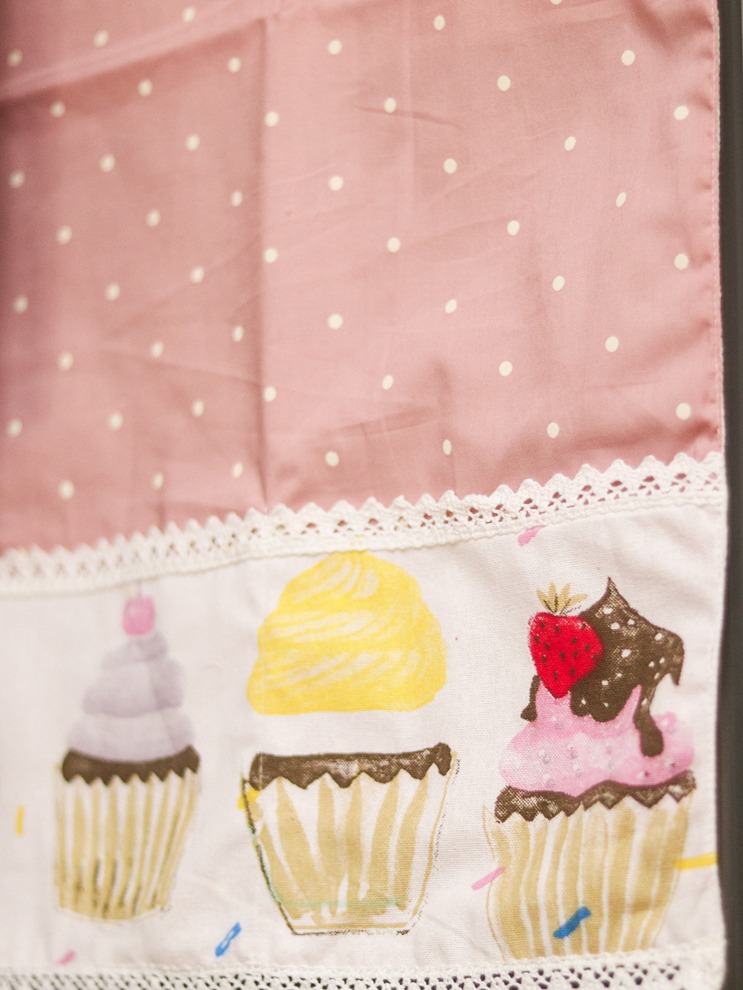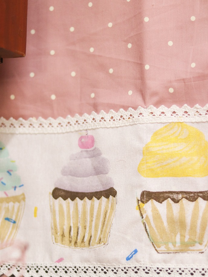 Pink polka and cupcake themed detailing kitchen appliance cover to protect your refrigerator top.