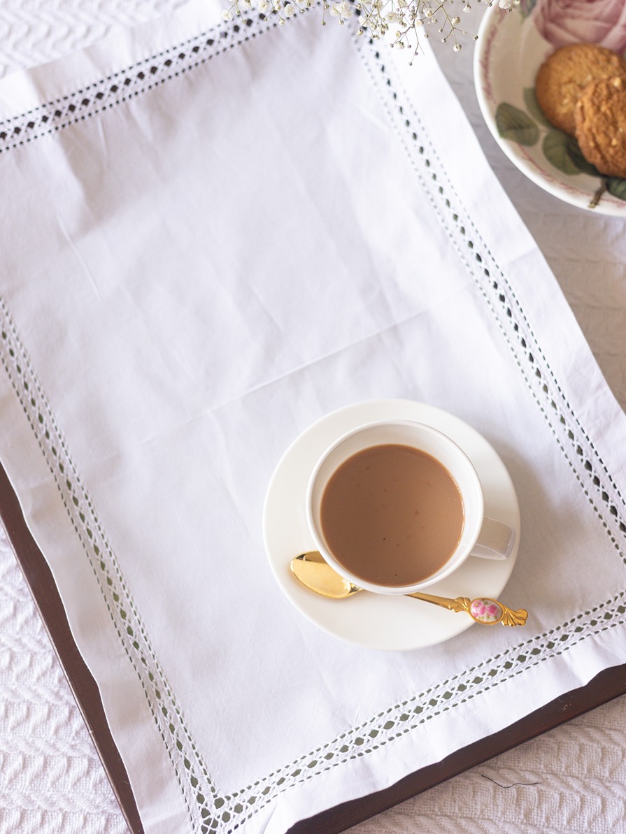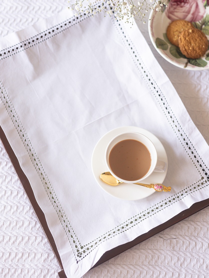• An embellished piece of cloth used to cover or fit into the tray used for carrying coffee, tea, snacks, drinks and other food items while serving your guests or styling your table.