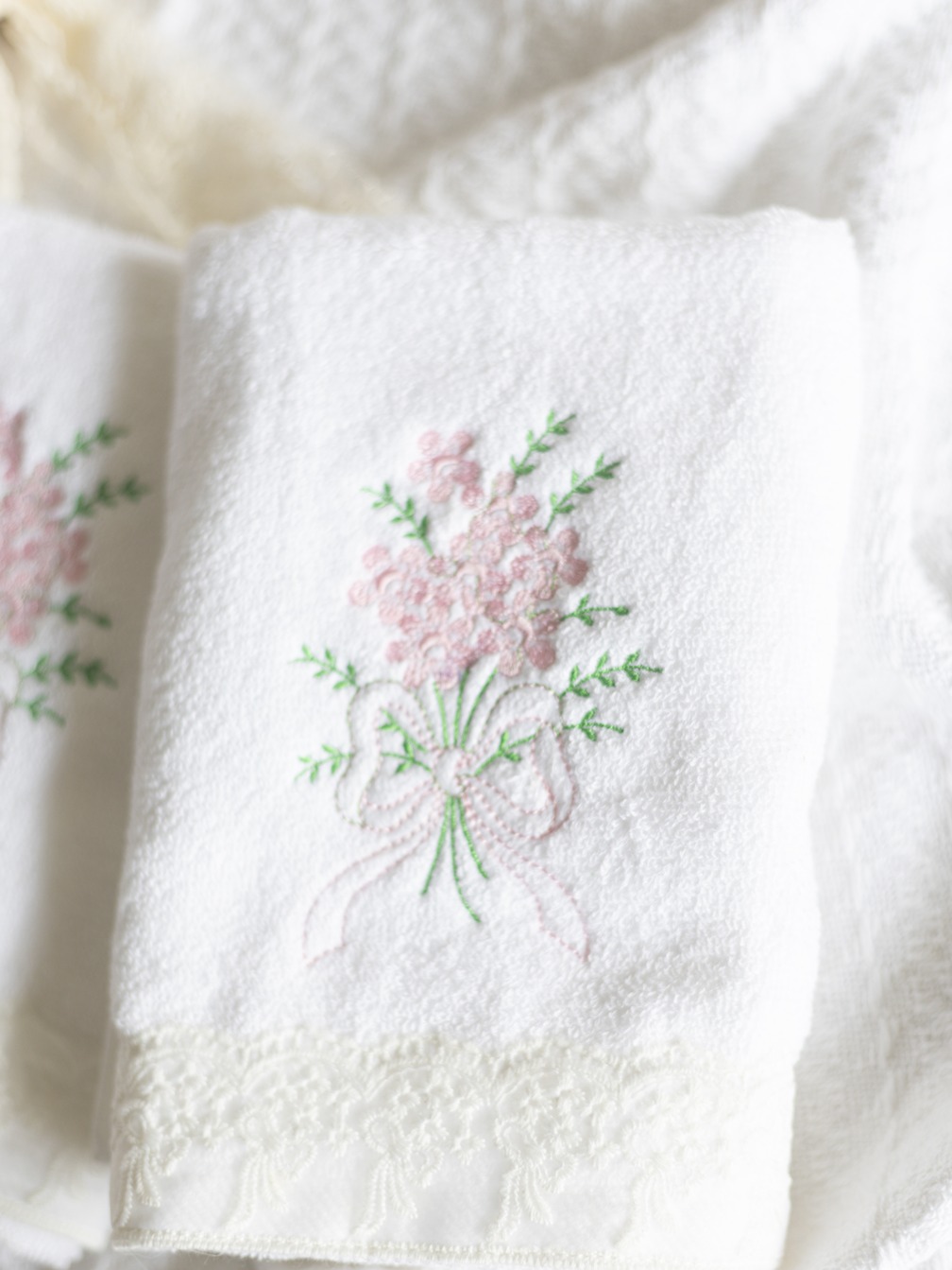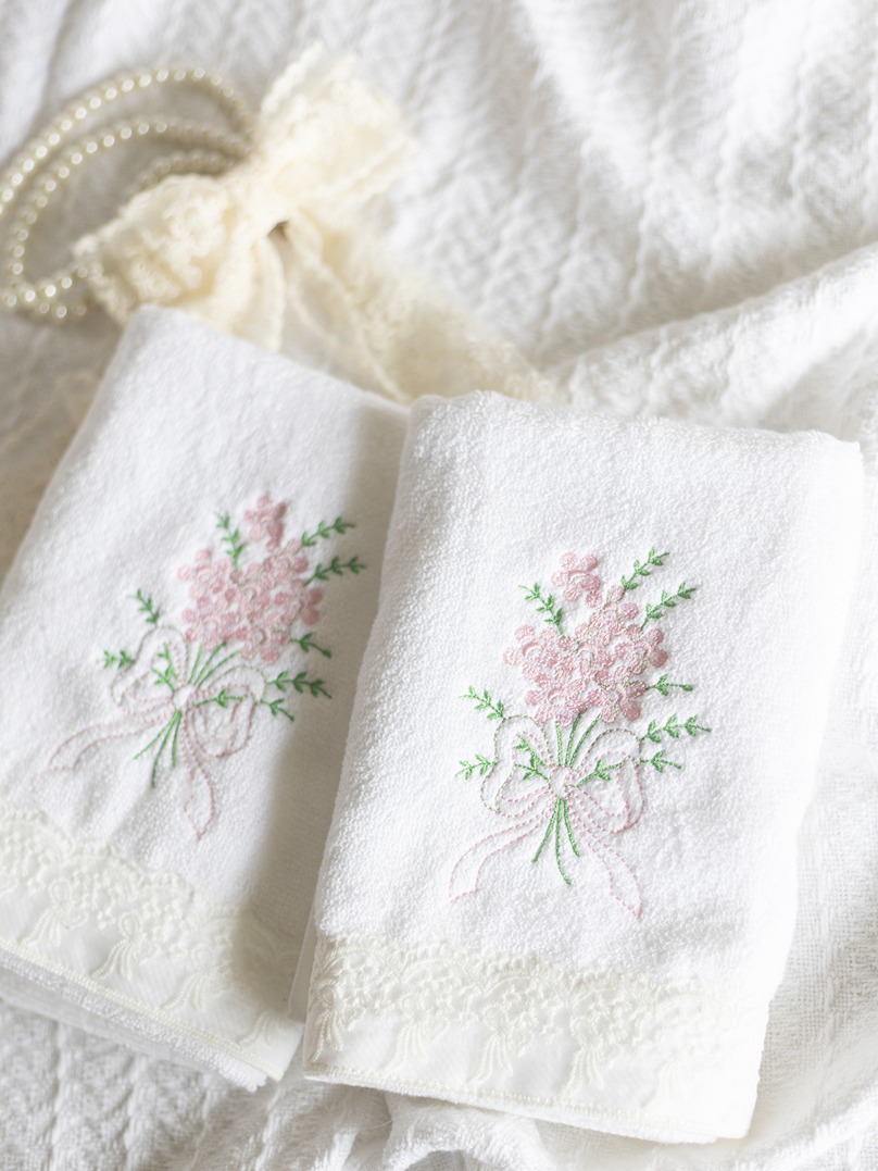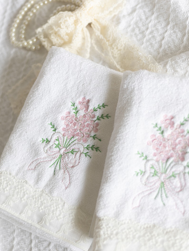 Description: Good quality towels with embroidery and lace detailing.