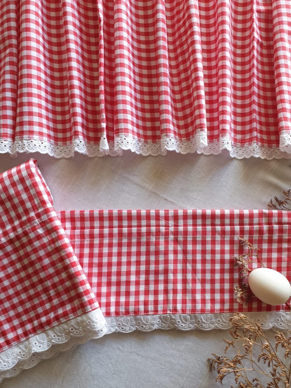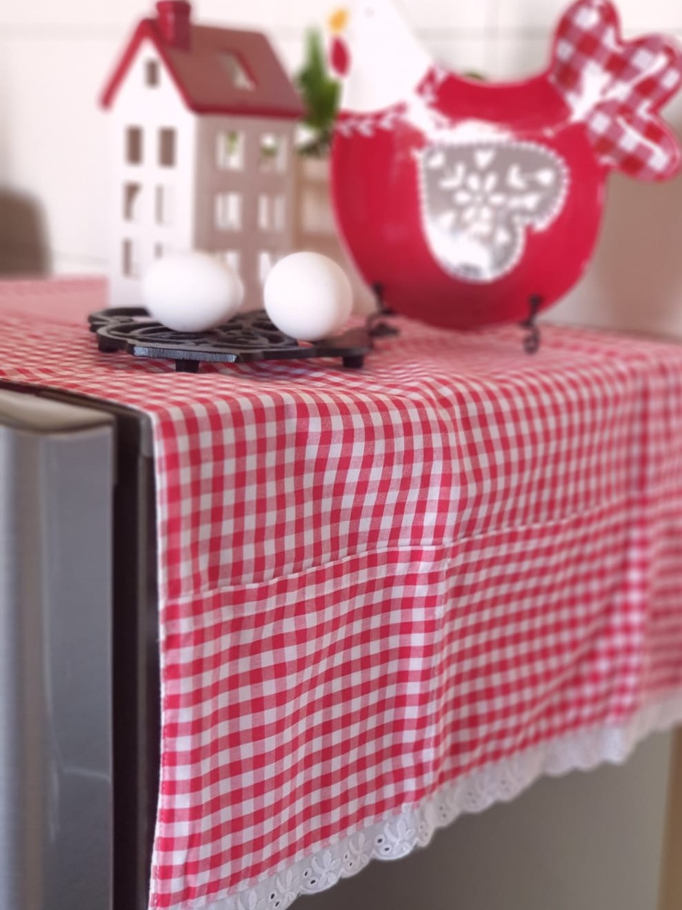 Classic gingham themed kitchen appliance cover to protect your refrigerator top. In addition to protecting your refrigerator from dust, dirt, water and sunlight, these covers helps you beautify your kitchen. You could also club them with our other kitchen linen products such as fridge door handle covers, oven top cover, kitchen valances, kitchen napkins and others to create a beautiful theme around.
