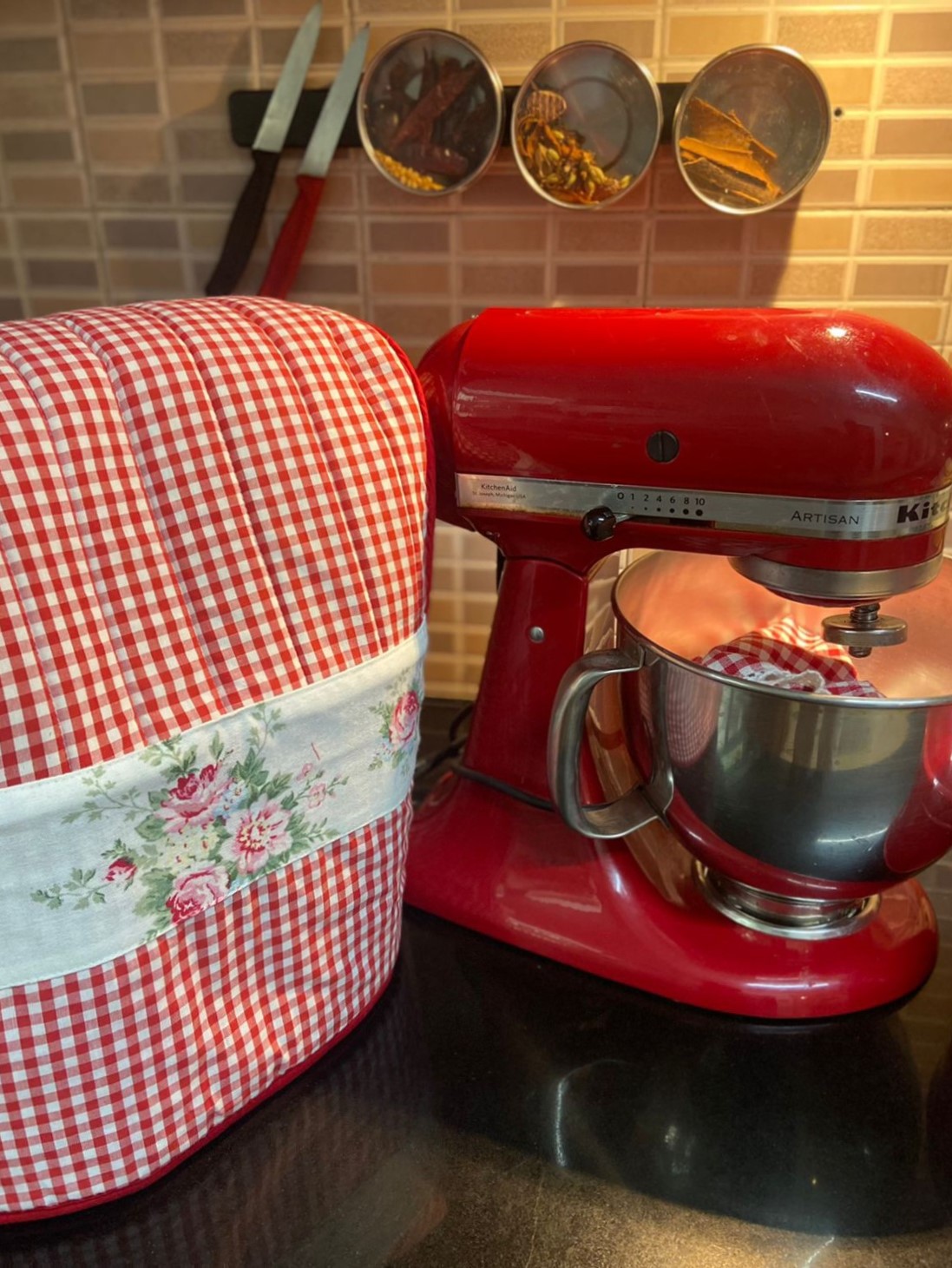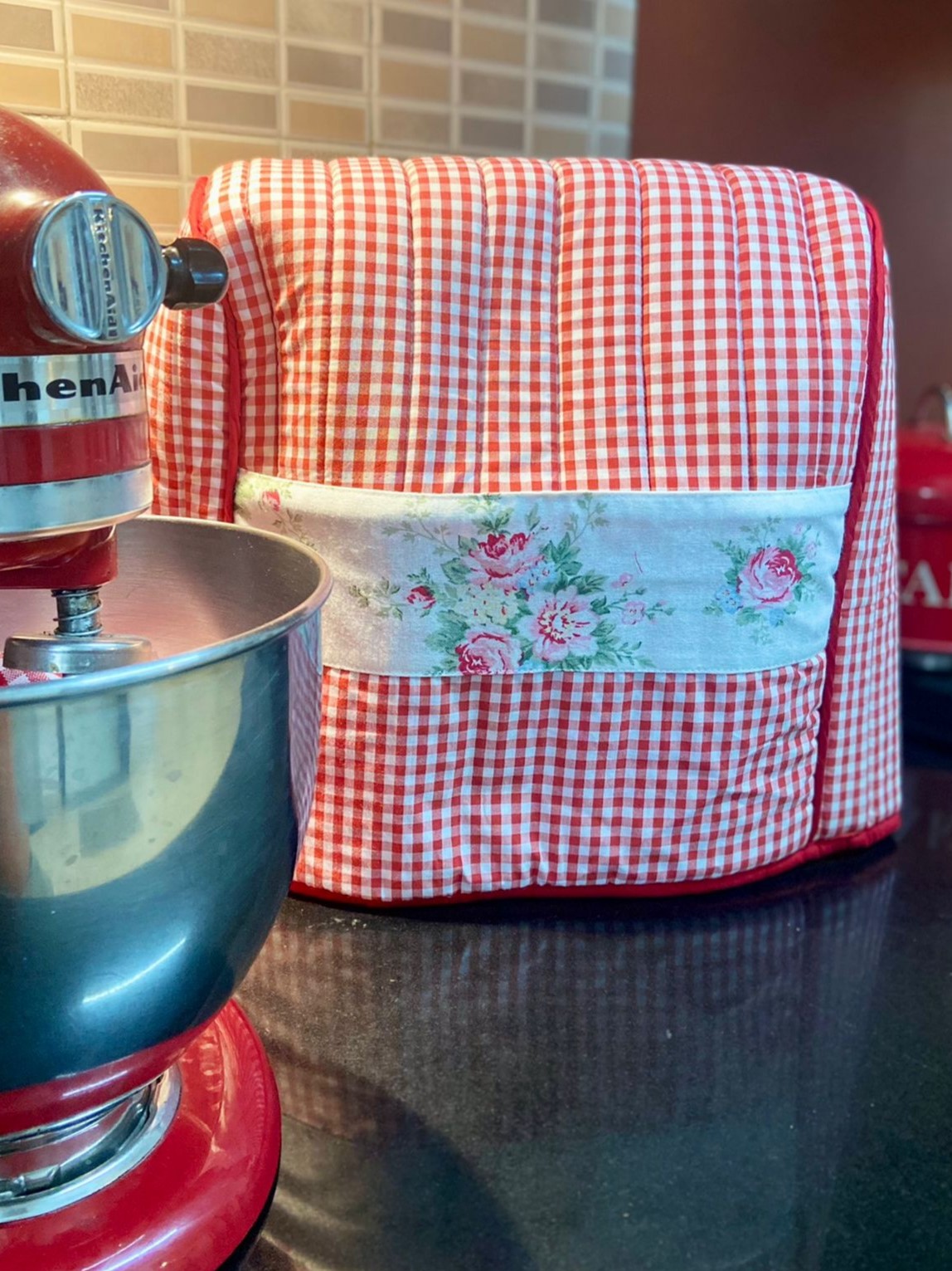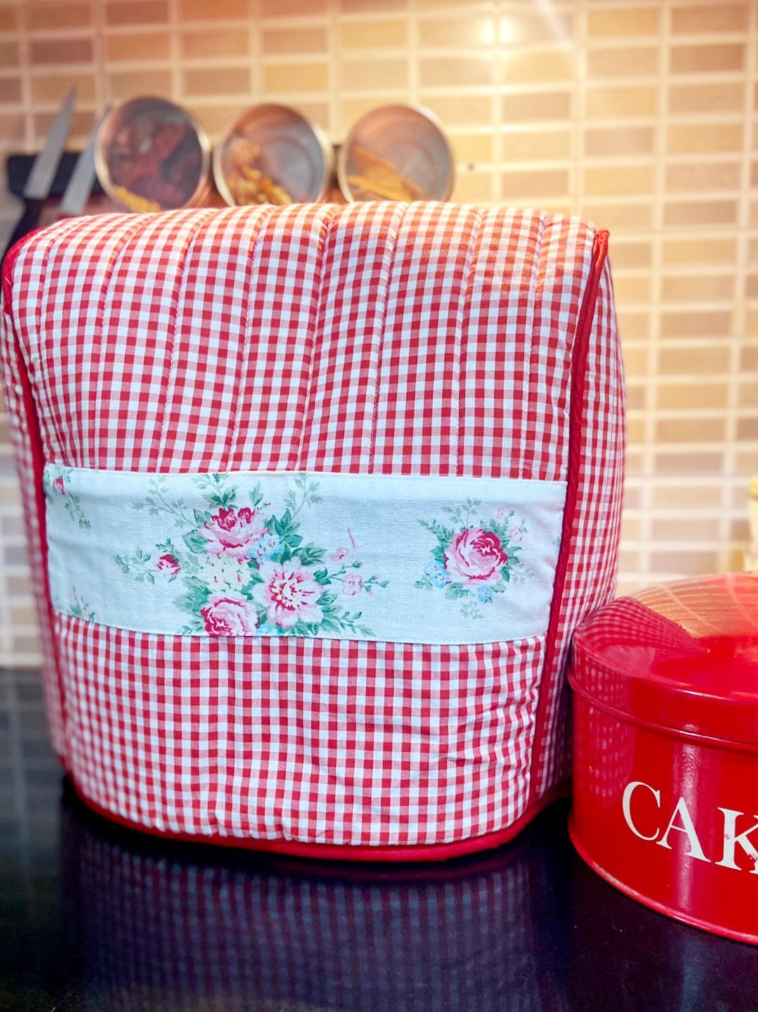 Country-side themed kitchen appliance cover to protect your kitchen-aid. In addition to protecting your kitchen-aid from dust, dirt, water and sunlight, these covers helps you beautify your kitchen. You could also club them with our other kitchen linen products such as fridge door handle covers, oven covers and others to create a beautiful theme around.