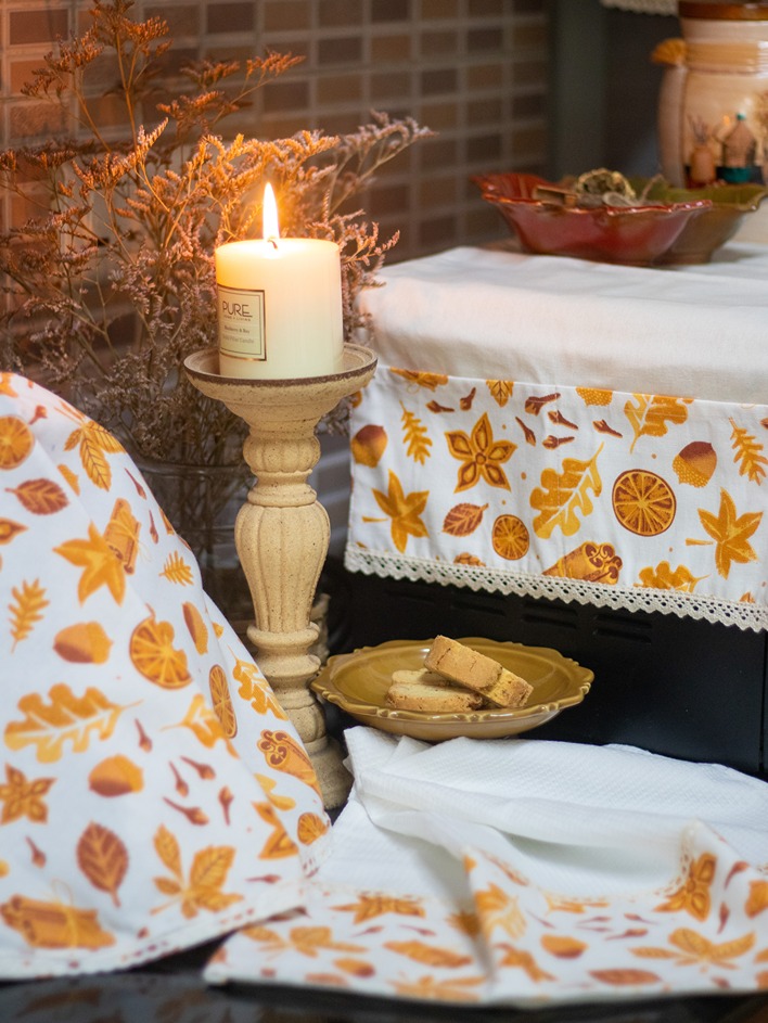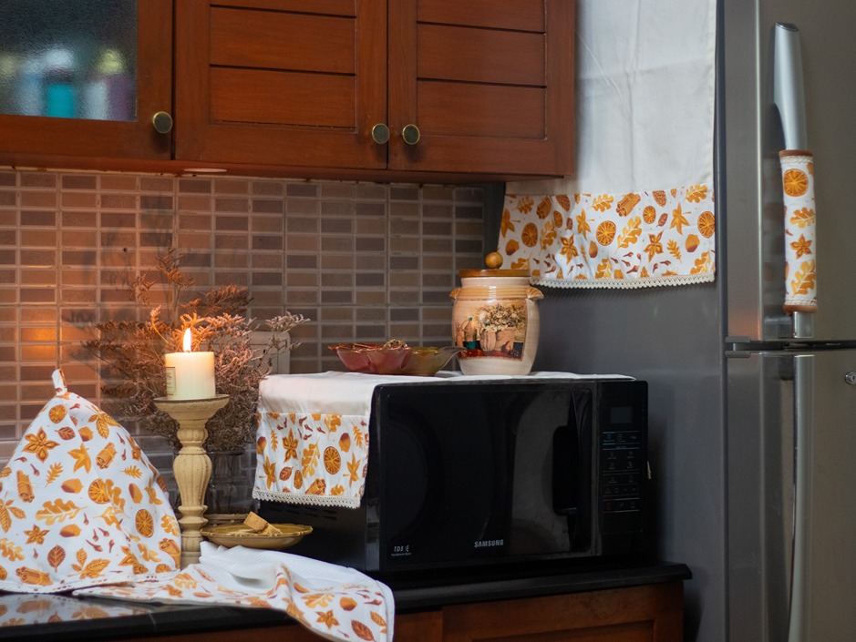 You could also club them with our other kitchen linen products such as fridge door handle covers, fridge top covers, kitchen napkins and others to create a beautiful theme around.
