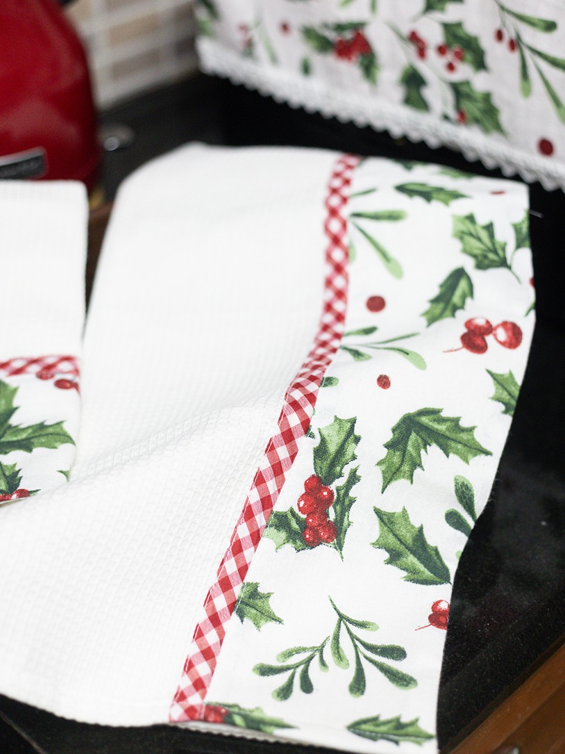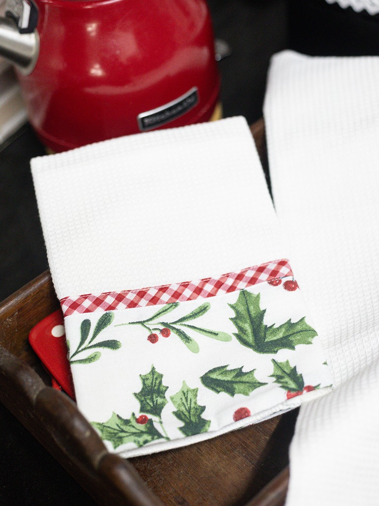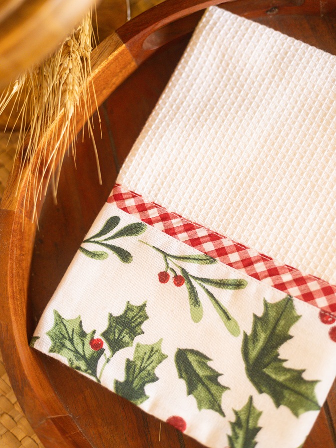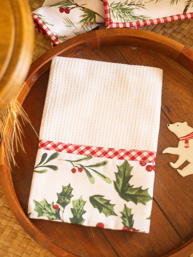 Kitchen Napkins - Christmas Holly - Off-white (Size: 17" x 27")