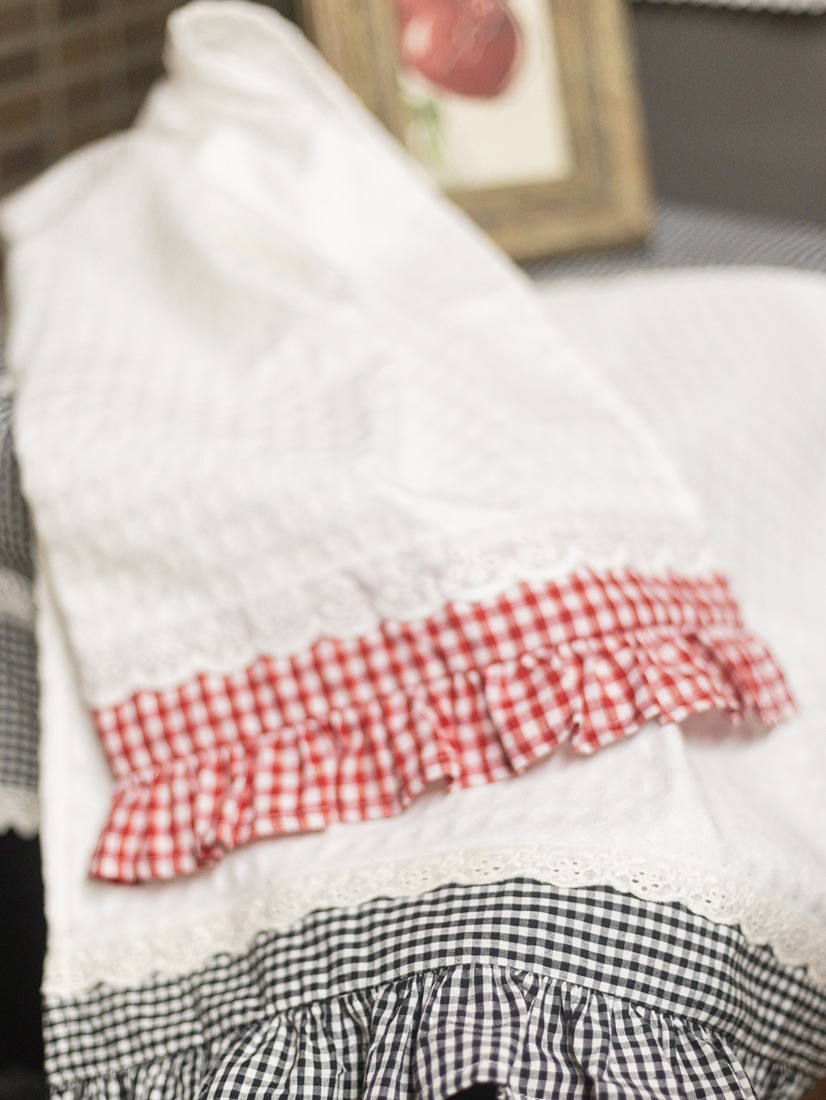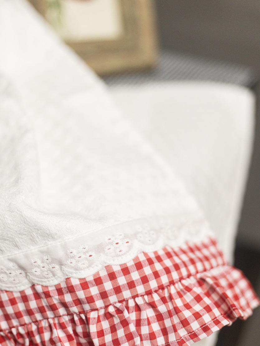 Kitchen Napkins - White with red gingham ruffle and lace (Size: 19" x 27")