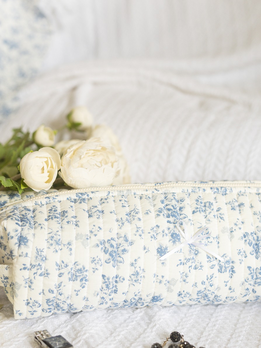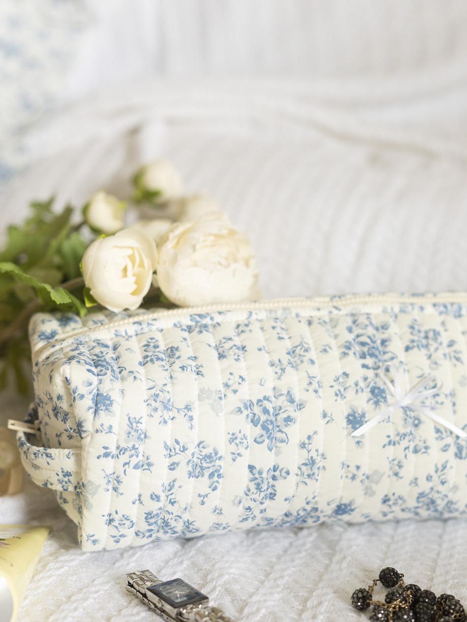 Multipurpose / Hair Iron Pouches - Whispering Blue Florals (Long size: 14" x 4" x 3")