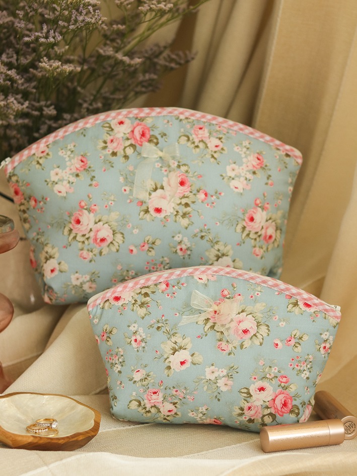 Multipurpose Pouch / Cosmetic Kit - Whimsical Roses - Set of Two (Medium & Large)