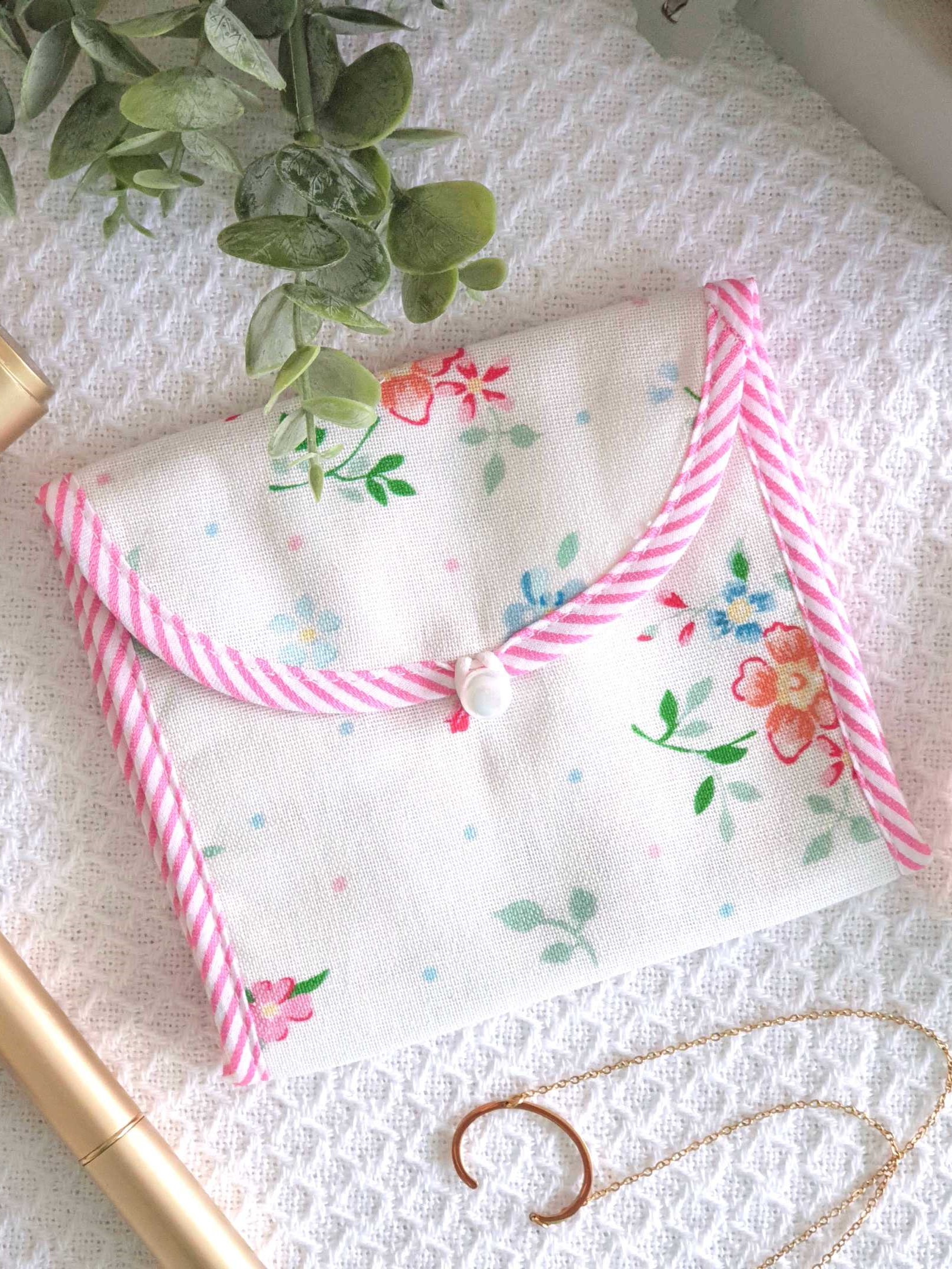 Multipurpose Pouch - for sanitary napkins, masks, bills etc. This light weight, handy pouches are perfect to carry your sanitary napkins comfortably and fashionably. You could also use them to organise and carry your masks, tissues, bills or any other daily essentials very conveniently.