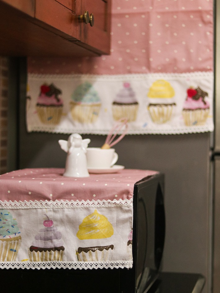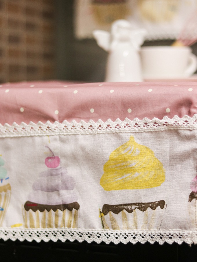 Pink polka with cupcake themed detailing - kitchen appliance cover to protect your microwave oven / OTG.