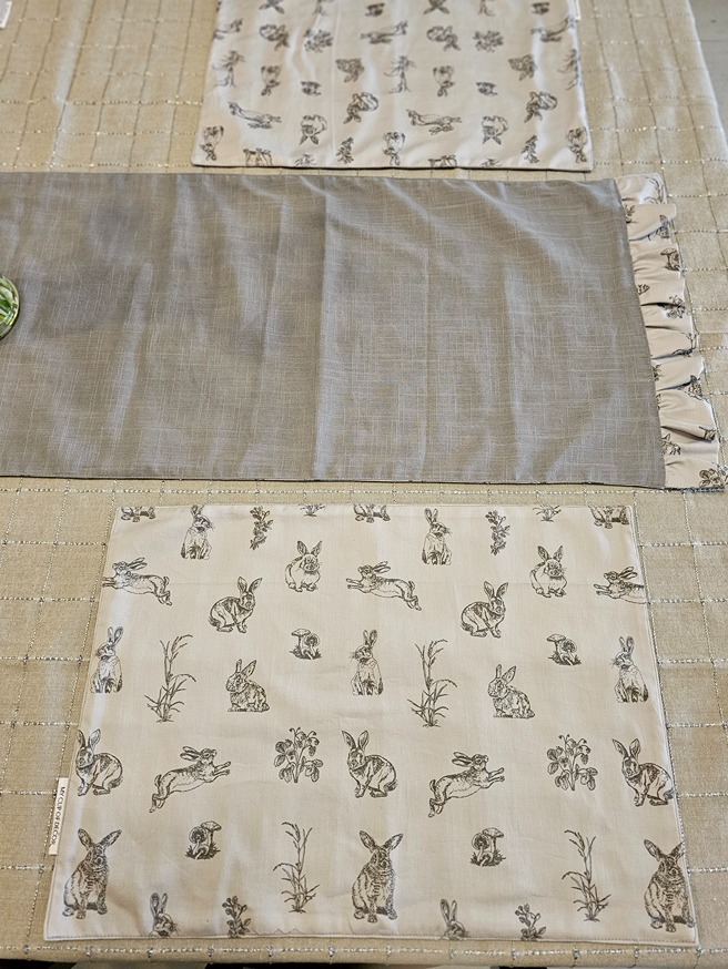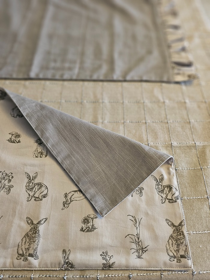 Reversible placemats - with fun bunny themed prints on one side and a solid grey on the other, these placemats can be used all year round.