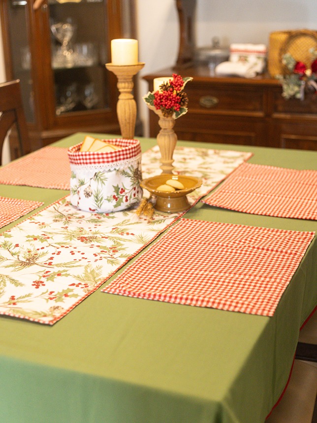 REVERSIBLE Table Placemats - Christmas themed prints on one side and classic red gingham on the other. This allows you to use it both ways and all year round.