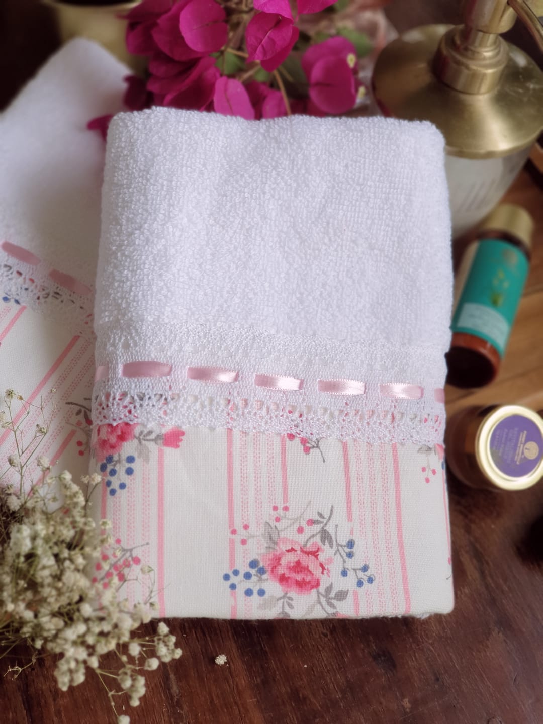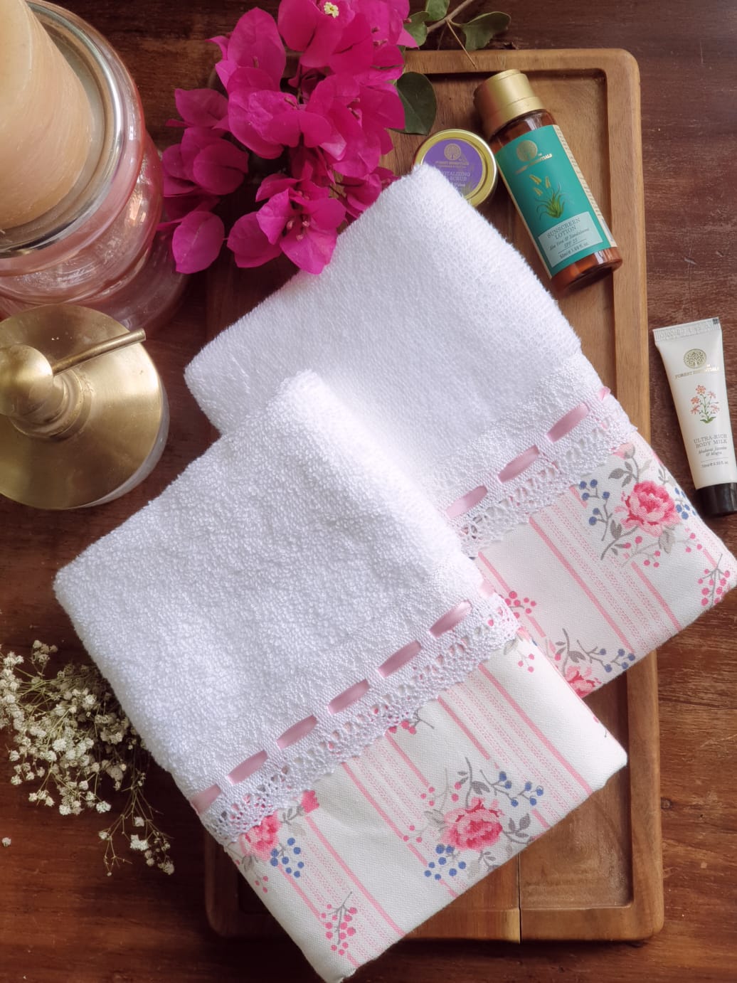 Super soft white cotton hand towel with floral and lace detailing on one end of the towel. Ultra Soft & Plush Feel, Light Weight, 2x Absorbency and Dries fast. Can be used in your designer bathroom near wash basin, guest bathroom, kitchen, for children's room or in office. It can also be used for gifting a lovely lady or a gentleman!