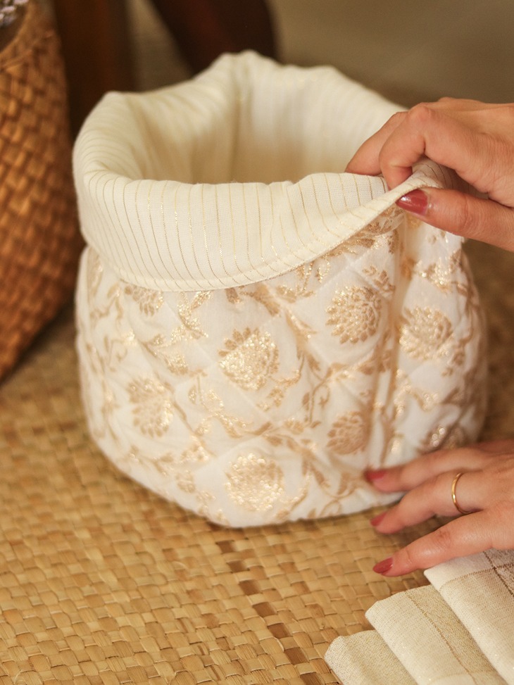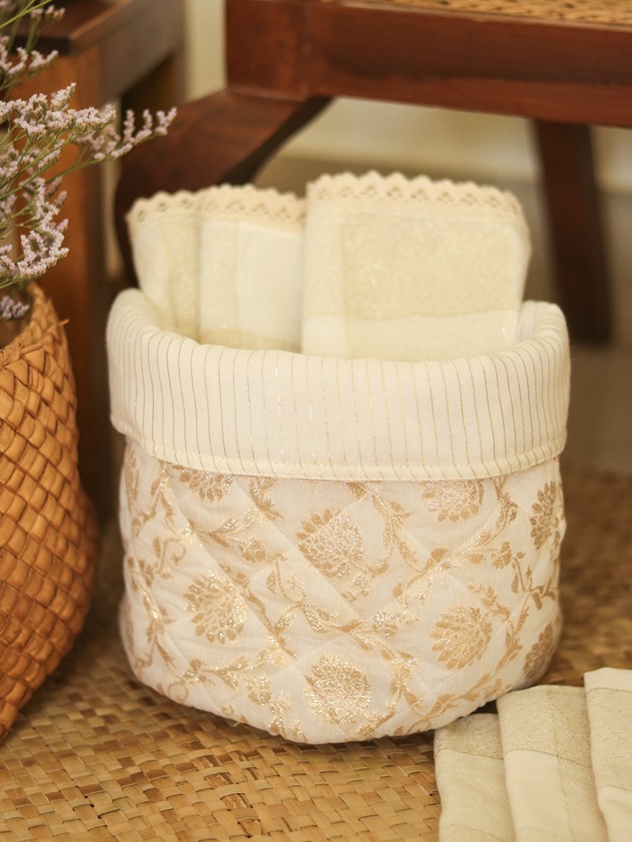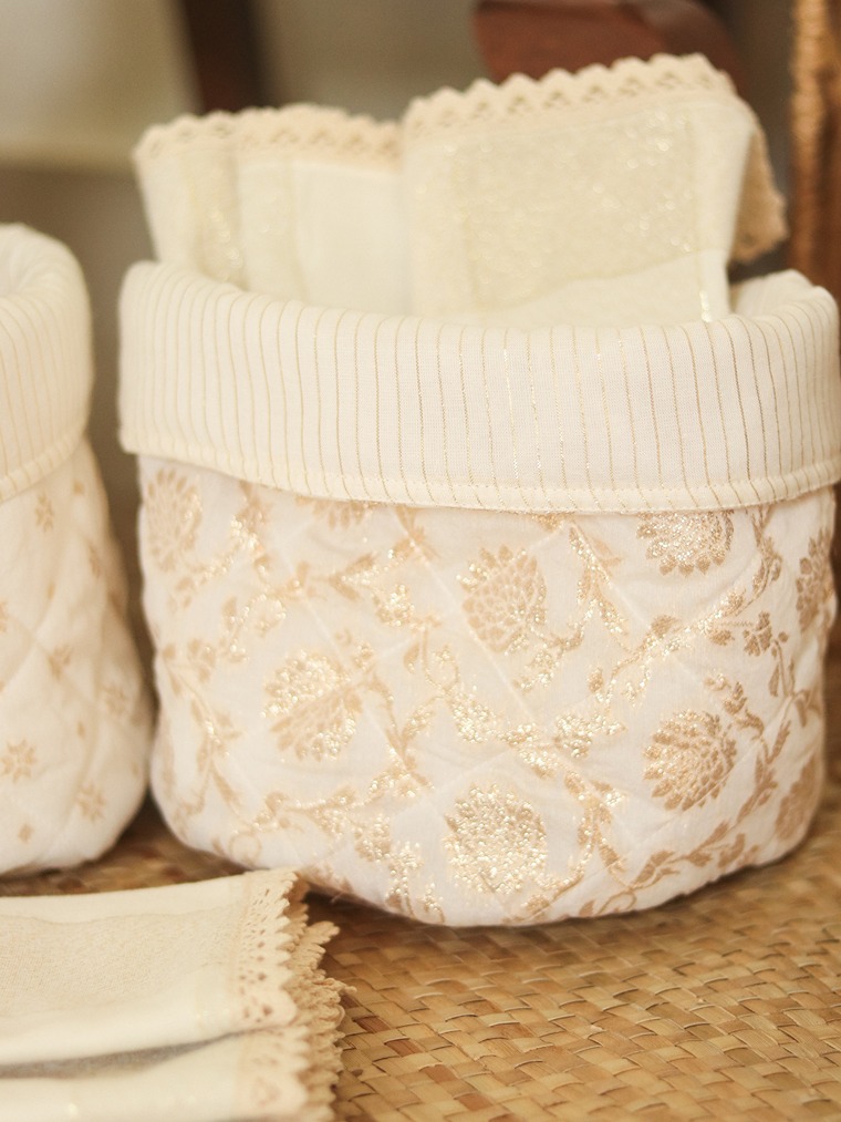 Reversible fabrics baskets are great for organising items like snacks, kitchen items, office supplies, bathroom supplies, socks or innerwear in wardrobes and drawers or even as planter cover and home décor.