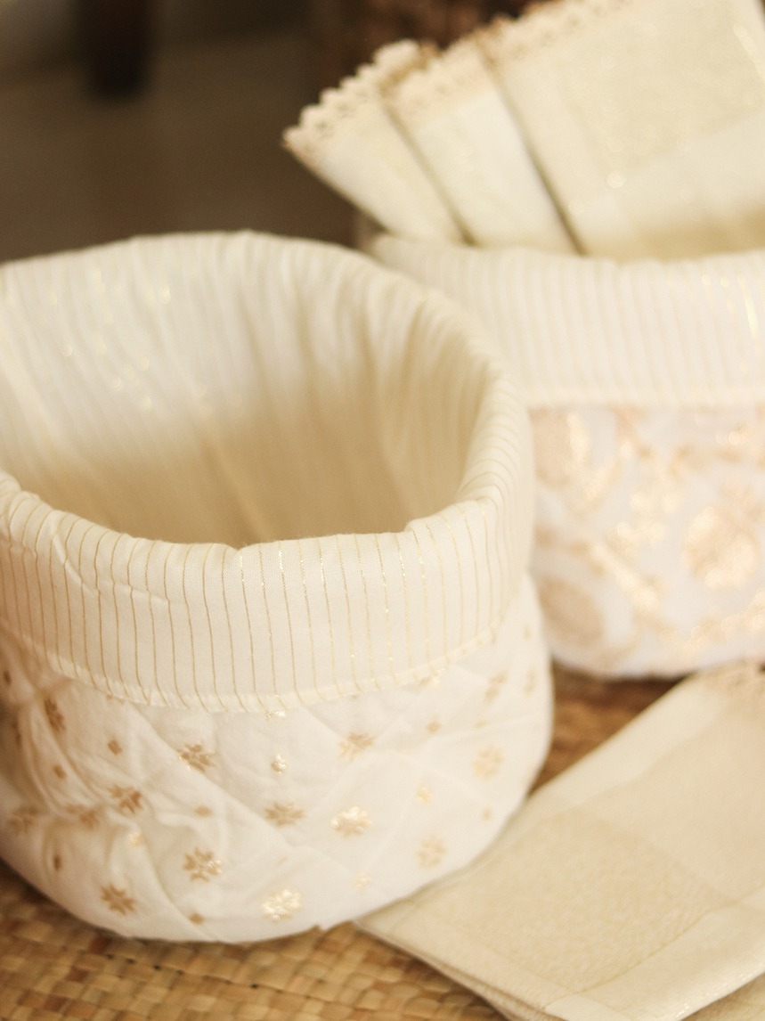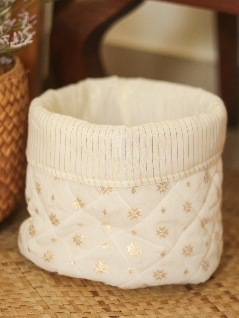Reversible fabrics baskets are great for organising items like snacks, kitchen items, office supplies, bathroom supplies, socks or innerwear in wardrobes and drawers or even as planter cover and home décor.