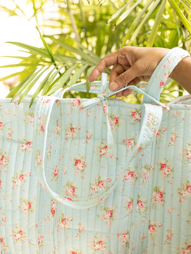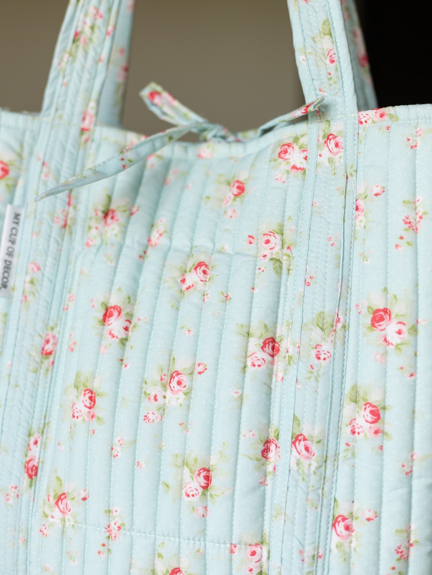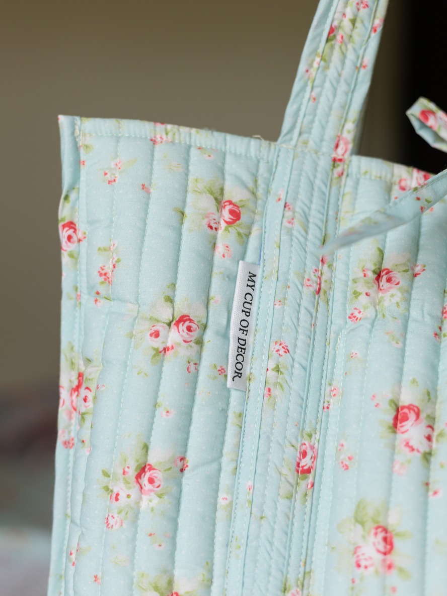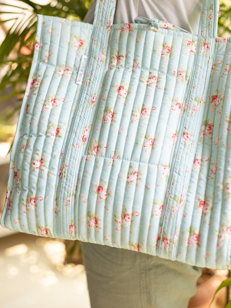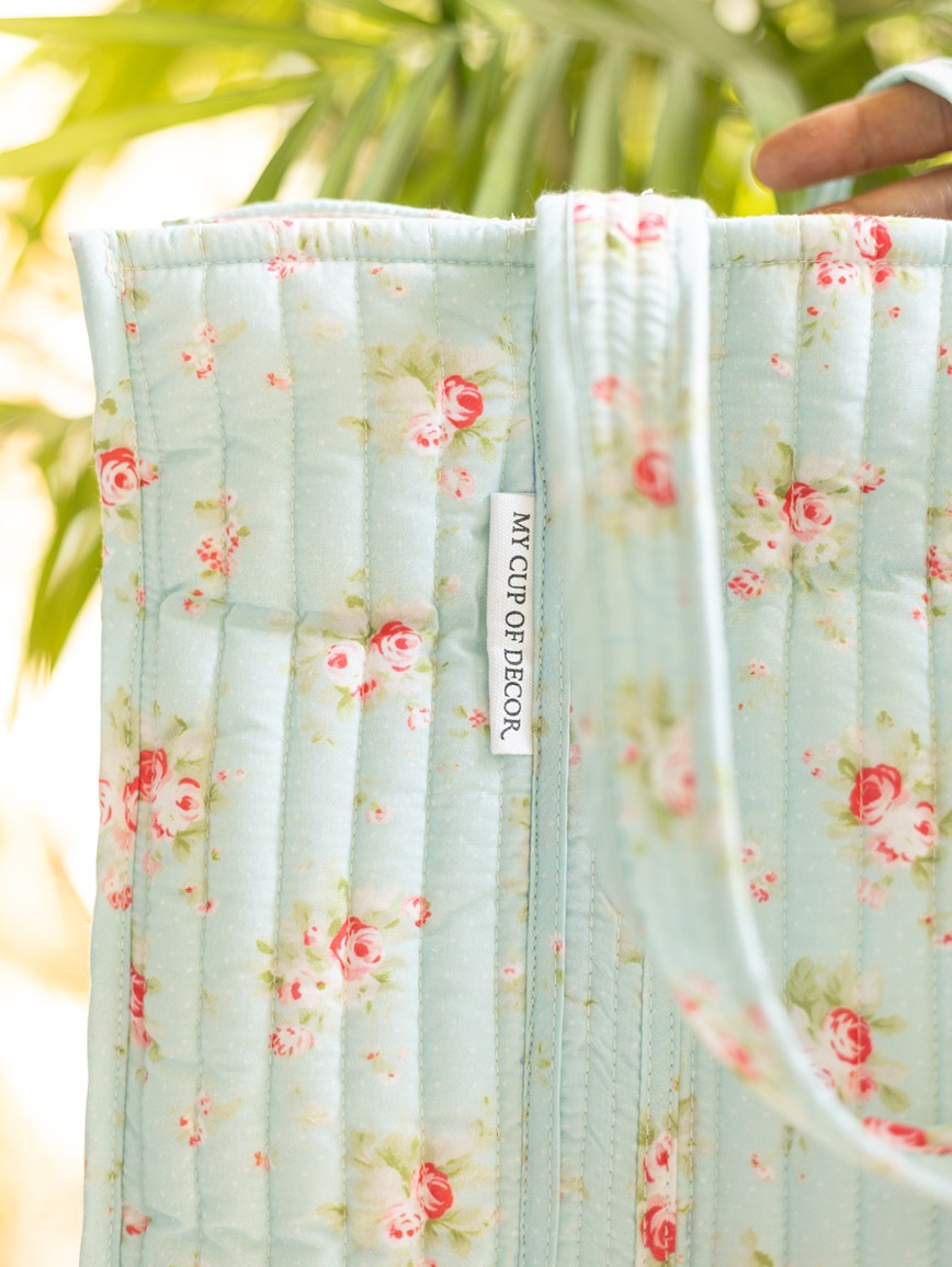 Quilted Tote Bags – Blue Petite Roses (Medium size: 13" x 14")