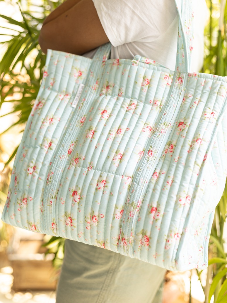 • Quilted cotton tote bag that brings together style, utility and sustainability.