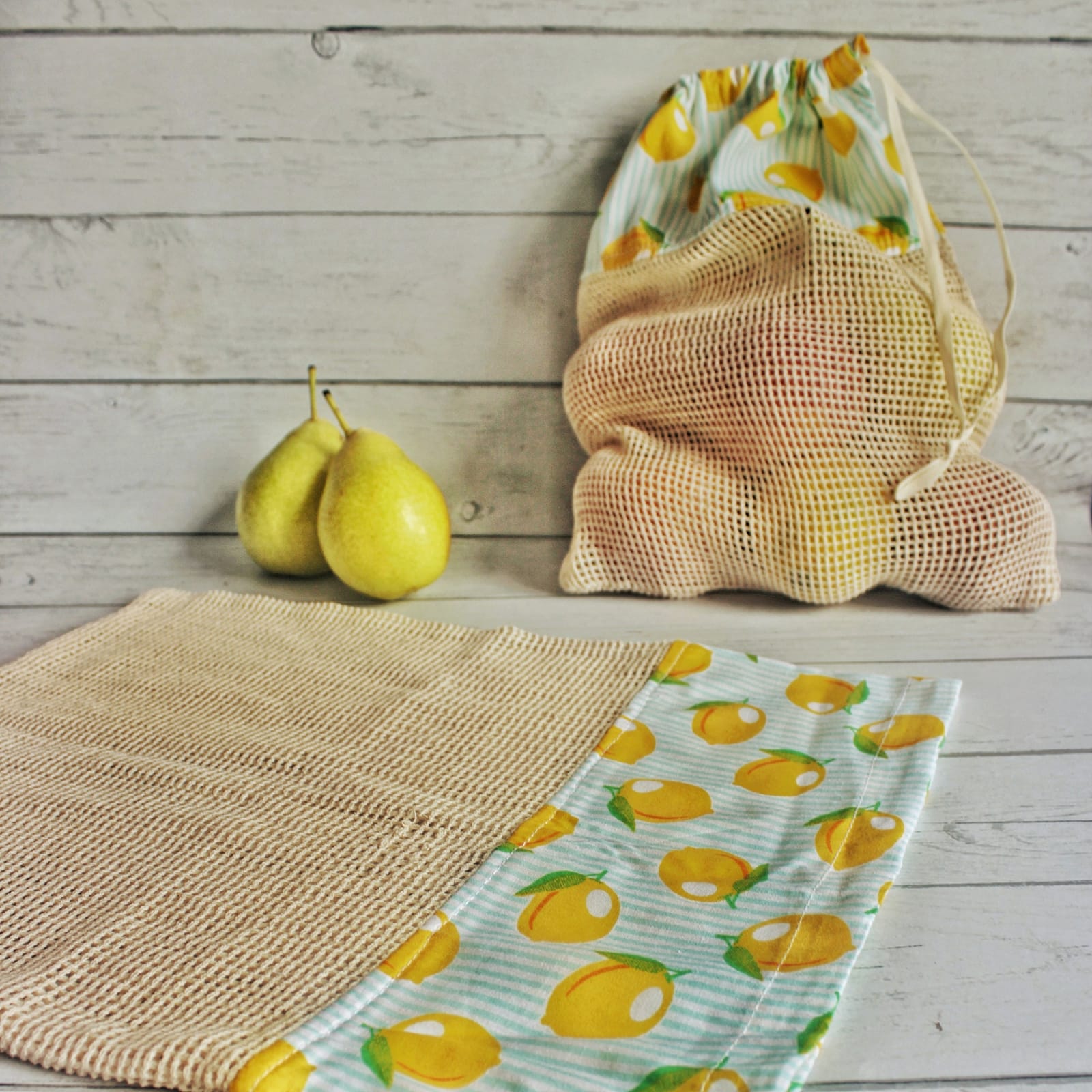 Reusable Veggie Bag - Lemon themed on jute cotton