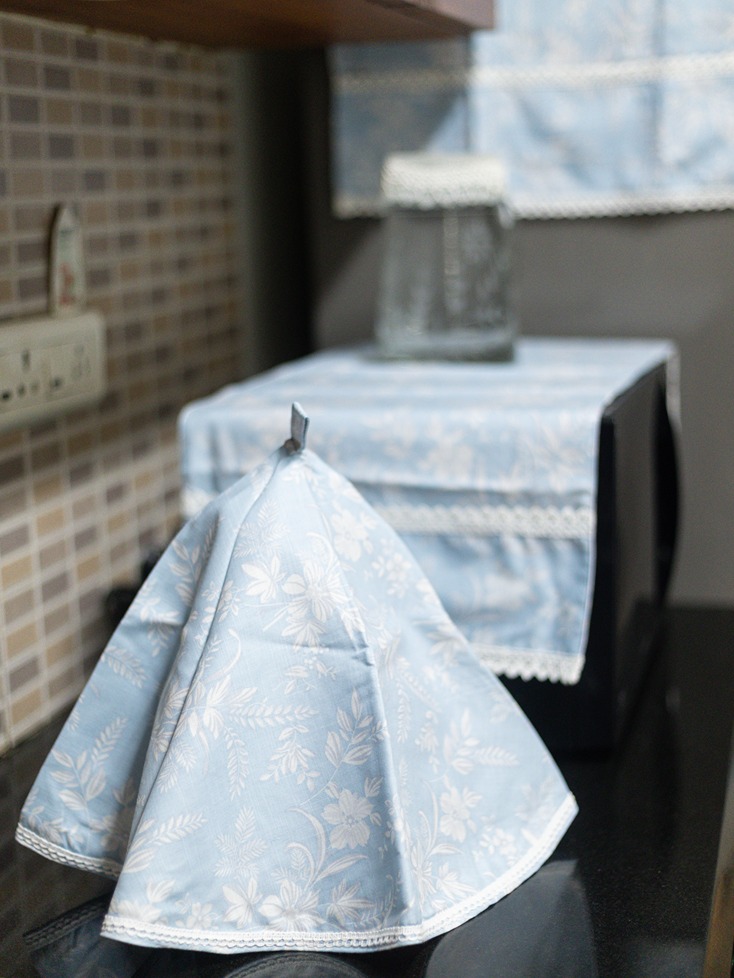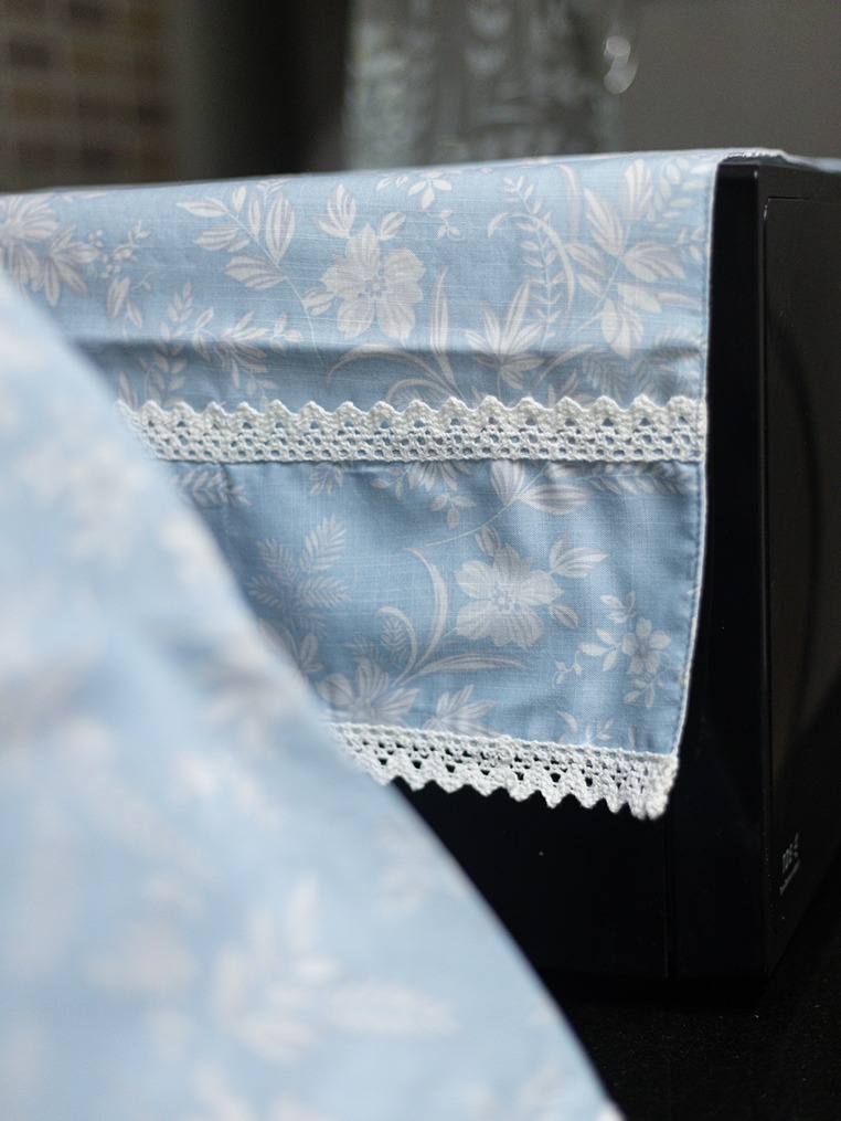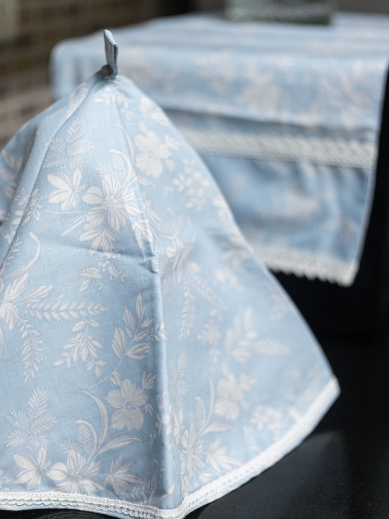 Round Appliance Cover (For Mixies, Kettles etc ) - Light blue floral and lace themed