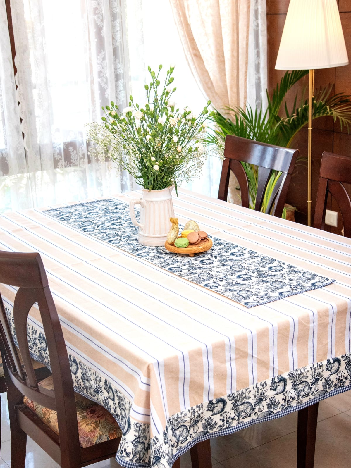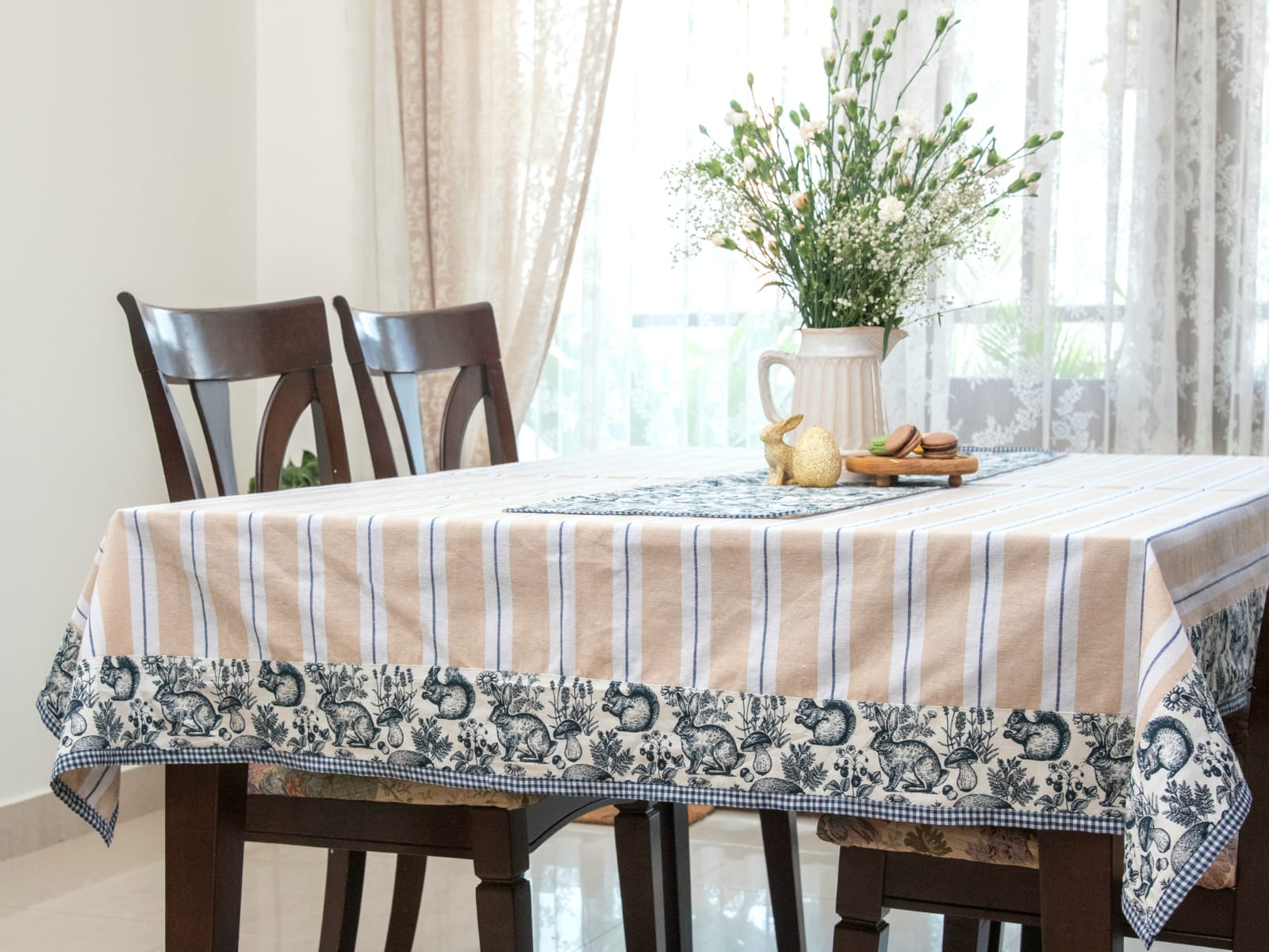 Table Cover - Beige & Blue - Forest animal themed (4 Seater / 6 Seater / 8 Seater)