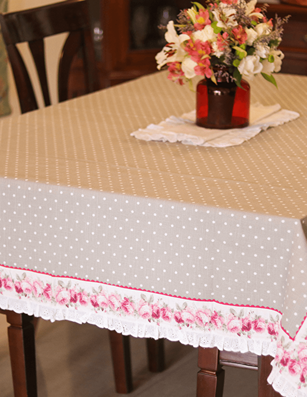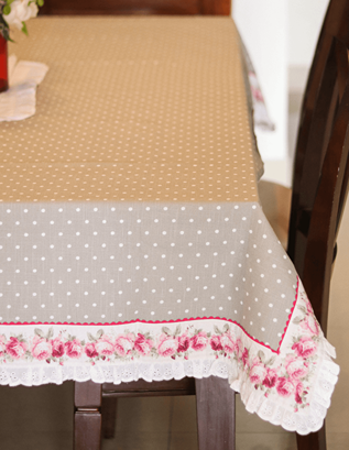Table Cover - Grey polka with floral border and lace detailing (4 Seater / 6 Seater / 8 Seater)