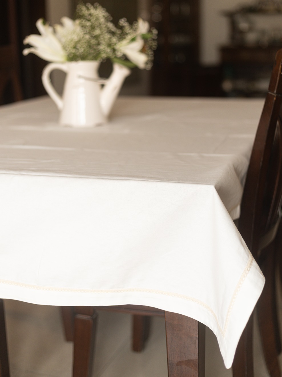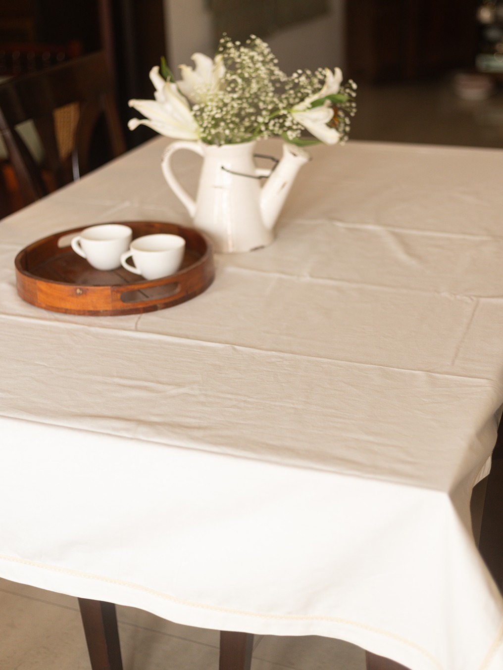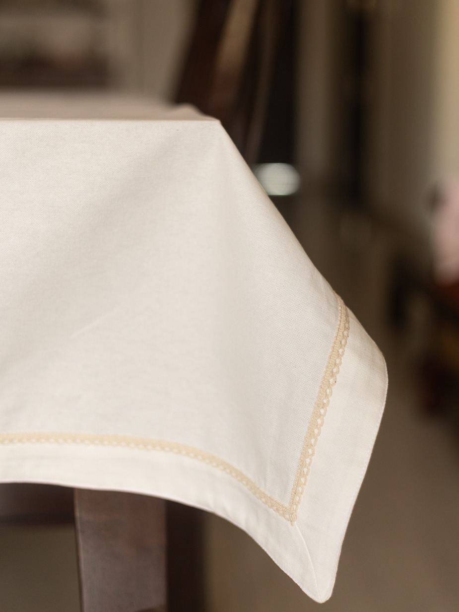 Table Cover - Off-white with beige lace (4 Seater / 6 Seater / 8 Seater)