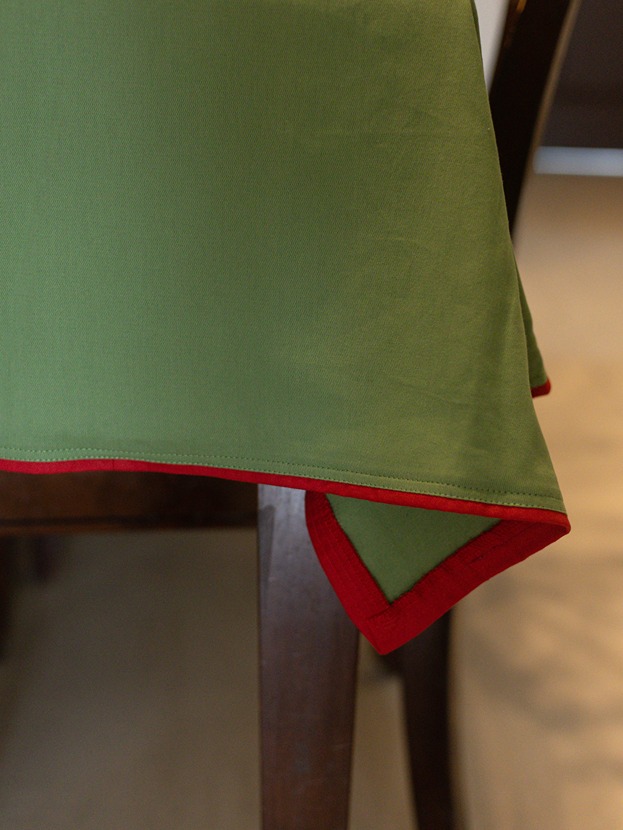 Table Cover - Solid green with elegant red detailing (4 Seater / 6 Seater / 8 Seater)