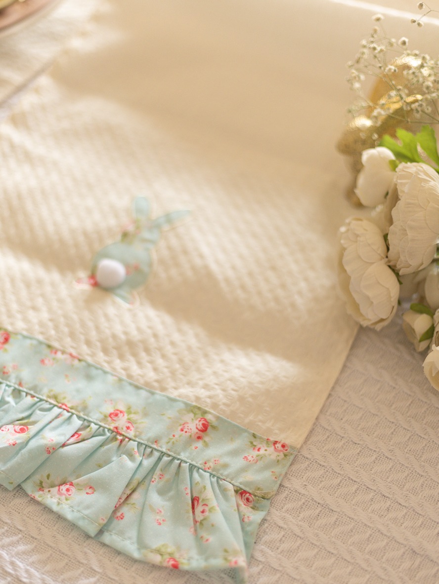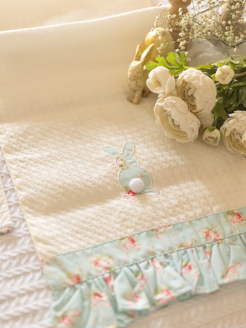 Celebrate your dinner & tea sessions with this lovely rabbit appliqued, floral themed table runner.